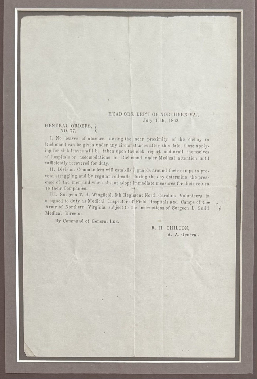 General Order #77 By Robert E Lee, 1862
