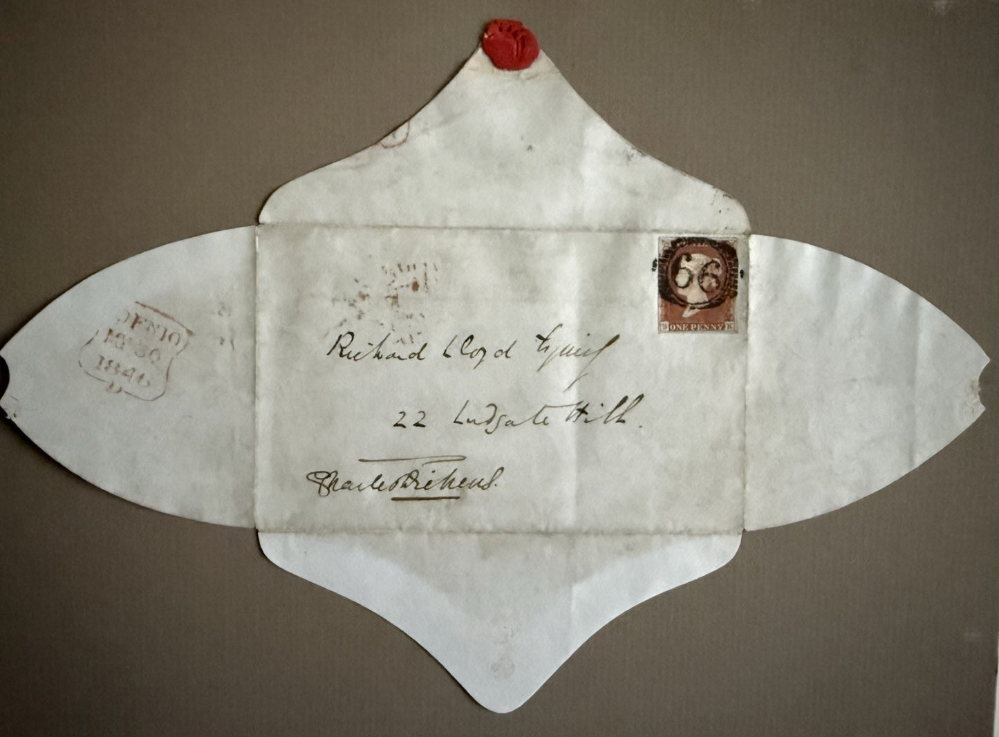 Charles Dickens Letter Envelope With Rare Penny Stamp