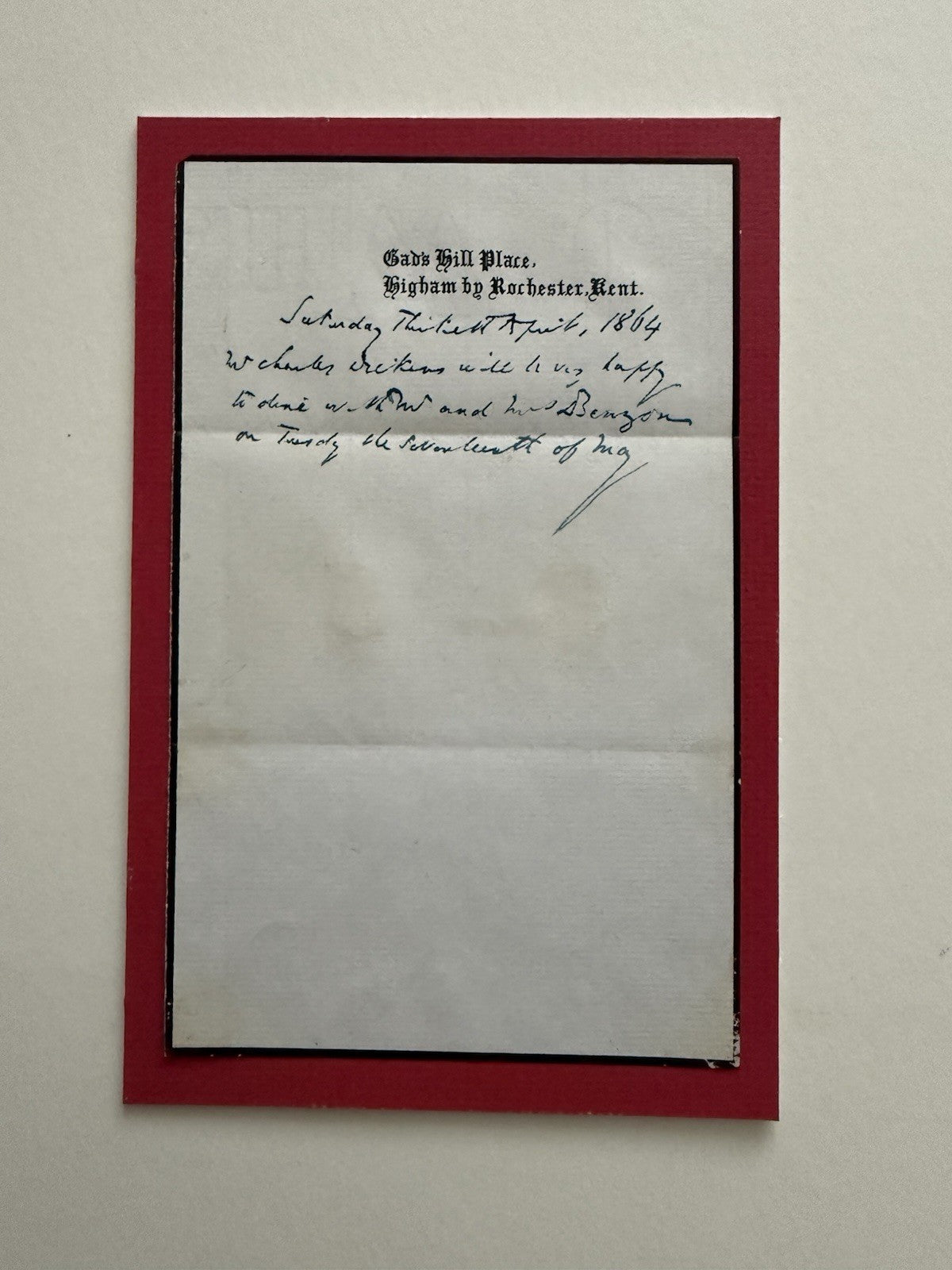 Charles Dickens Signed Dinner Invitation