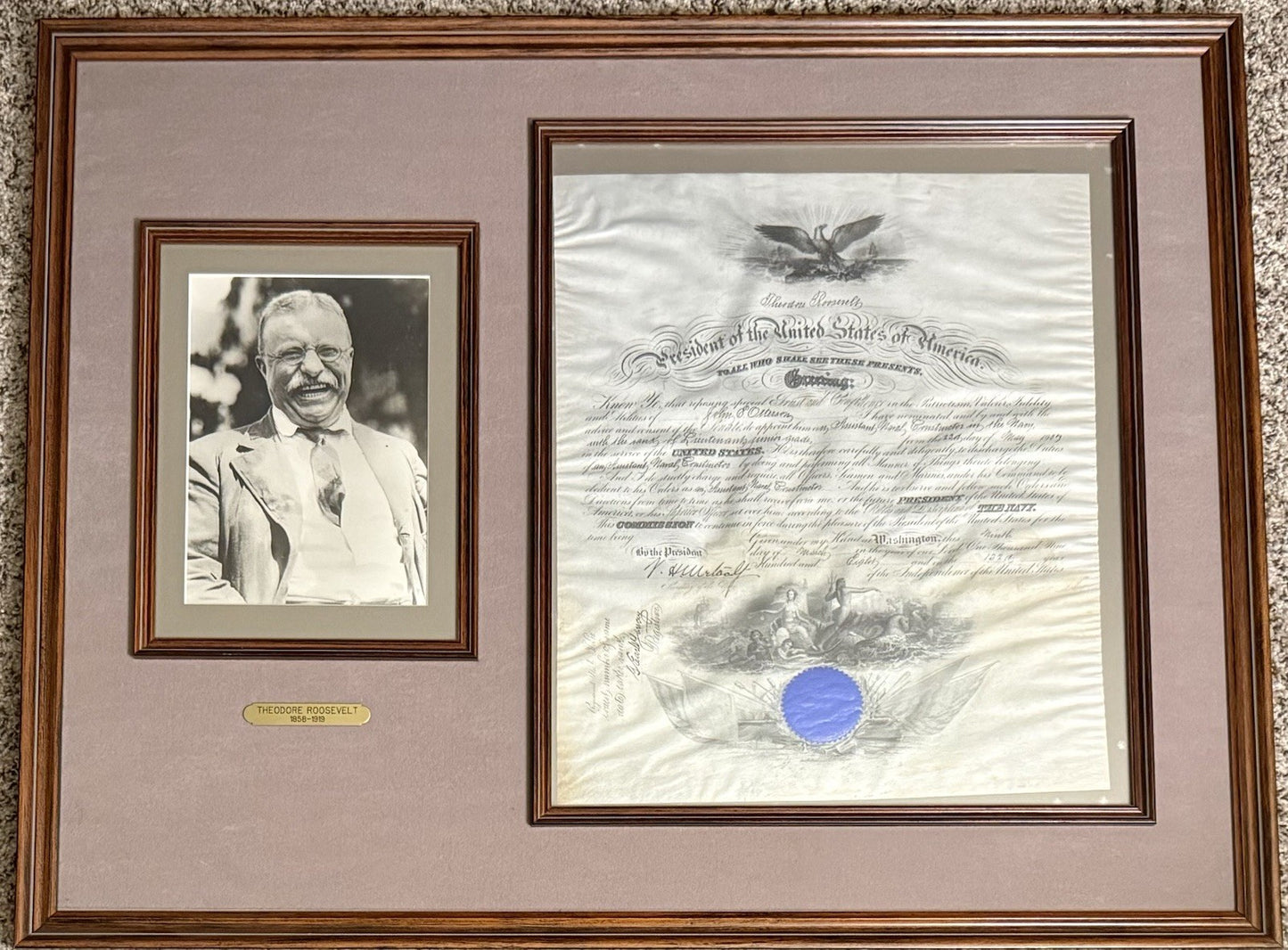 Naval Commission Signed By Teddy Roosevelt With Connection To Paramount Studios
