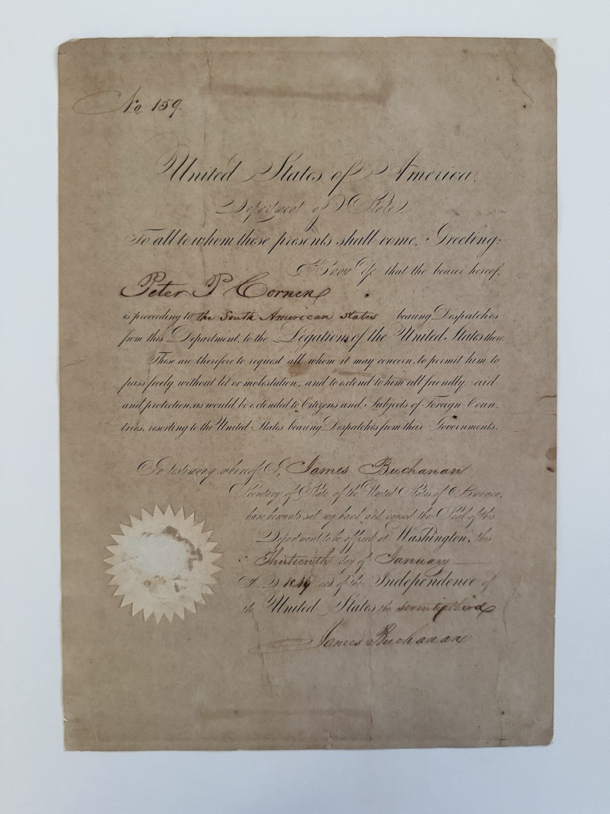 James Buchanan 1849 Signed Document