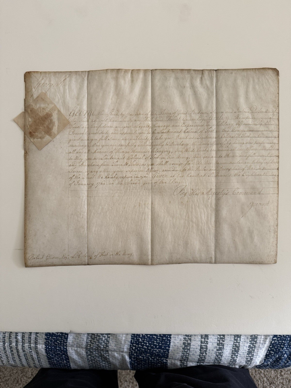 Appointment On Vellum Signed By King George III, January 18, 1762