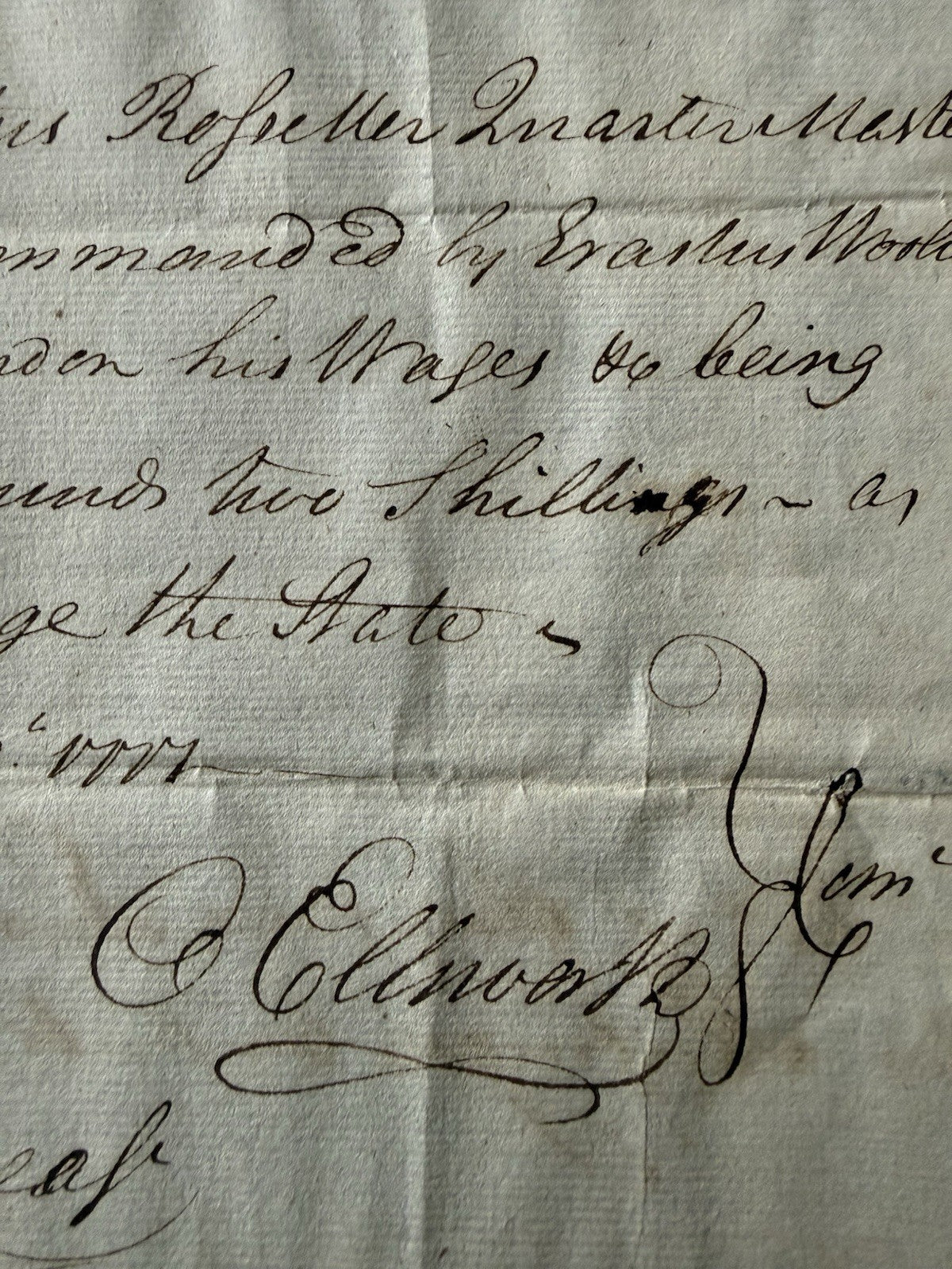 1777 Pay Order Signed By Ellsworth, Future Chief Justice Of Supreme Court