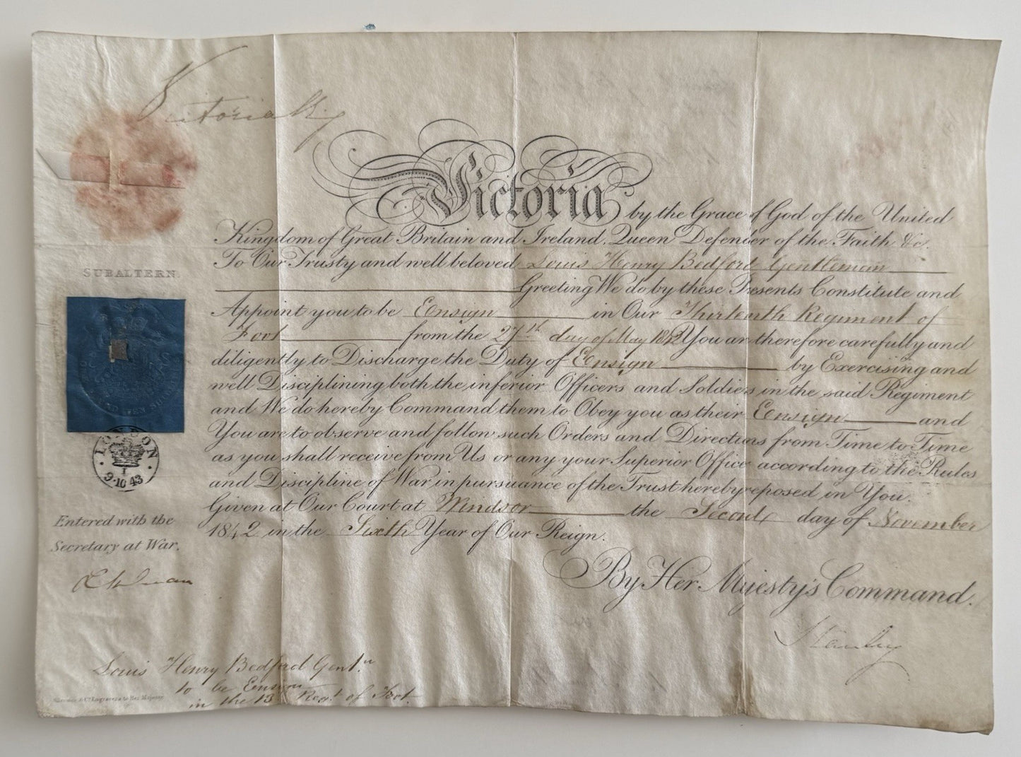 1842 Appointment Document Signed By Queen Victoria