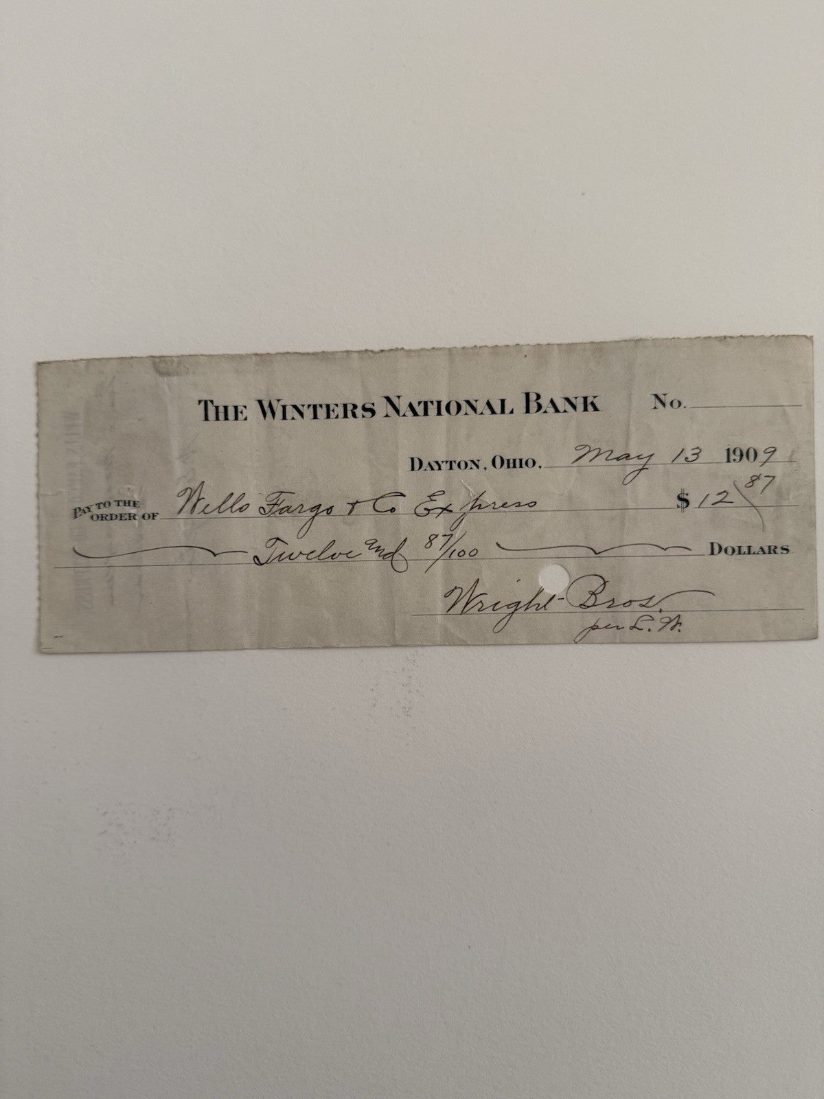 1909 Wright Brothers Check Signed By L. Wright To Wells Fargo Express.