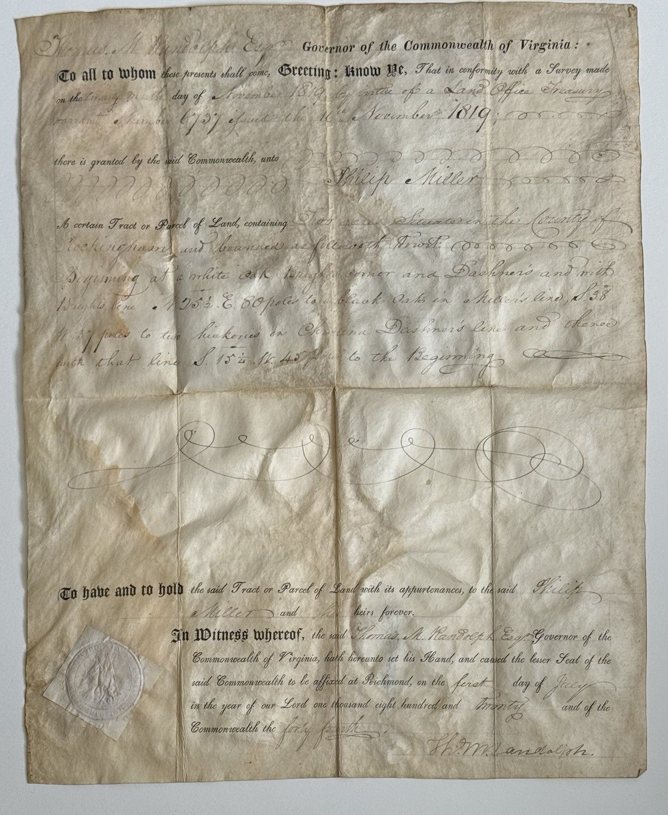 1810 Land Patent From Commonwealth Of Pennsylvania