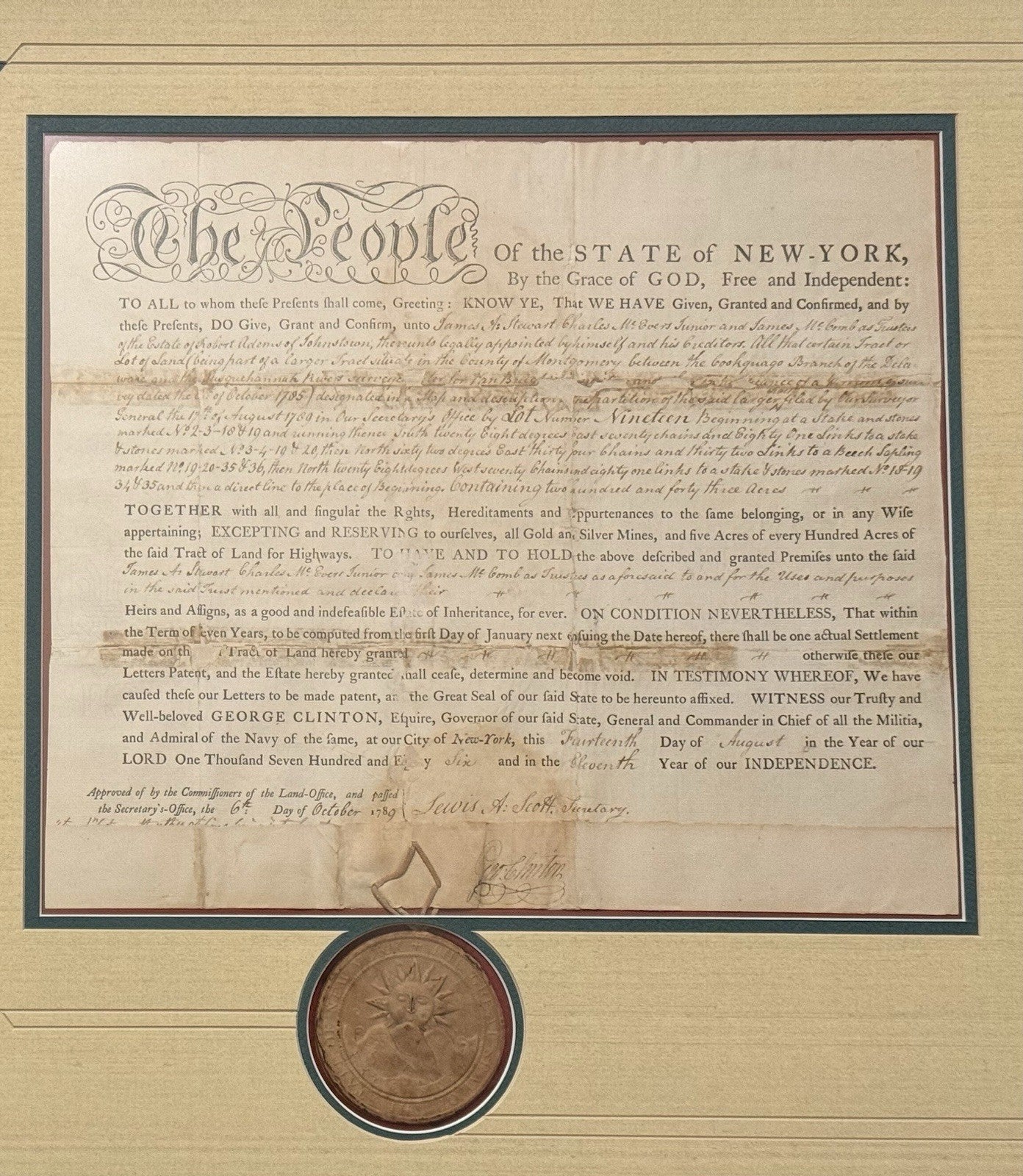 1789 Land Grant Signed By General Clinton, Then Governor Of New York.