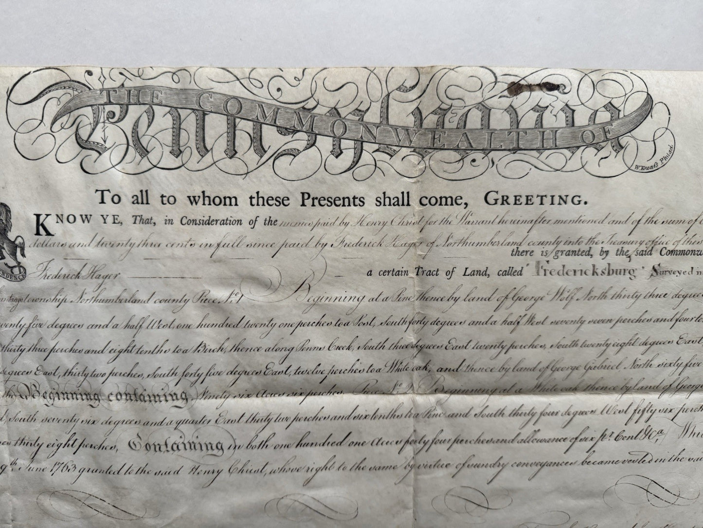 1810 Fredericksburg Pennsylvania Land Grant