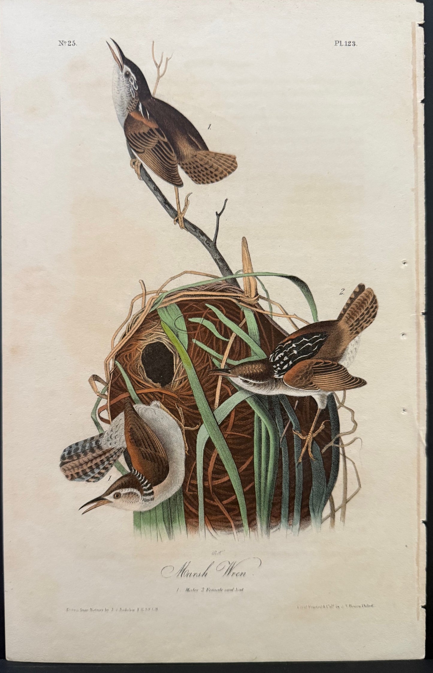 When the production of the double elephant prints was nearing its completion, Audubon began a new undertaking. This was to be a miniature edition of the Birds of America, accompanied by text. This work is often termed The Royal Octavo Edition, the octavo referring to the size of the paper being about 1/8 the size of a normal folio, or about 6 1/2 x 10 1/2inches. Audubon himself called it "The Birds in Miniature" and you will also hear it simply being termed the 'miniatures'. It was produced in Philadelphia, USA, by John T. Bowen.