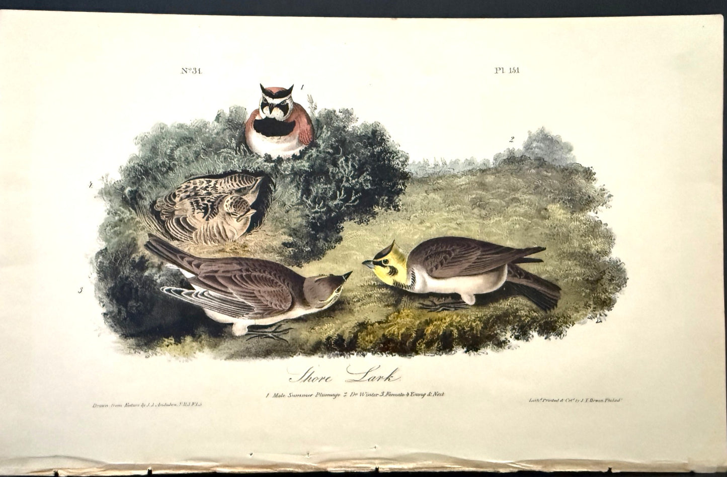 When the production of the double elephant prints was nearing its completion, Audubon began a new undertaking. This was to be a miniature edition of the Birds of America, accompanied by text. This work is often termed The Royal Octavo Edition, the octavo referring to the size of the paper being about 1/8 the size of a normal folio, or about 6 1/2 x 10 1/2inches. Audubon himself called it "The Birds in Miniature" and you will also hear it simply being termed the 'miniatures'. It was produced in Philadelphia, USA, by John T. Bowen.