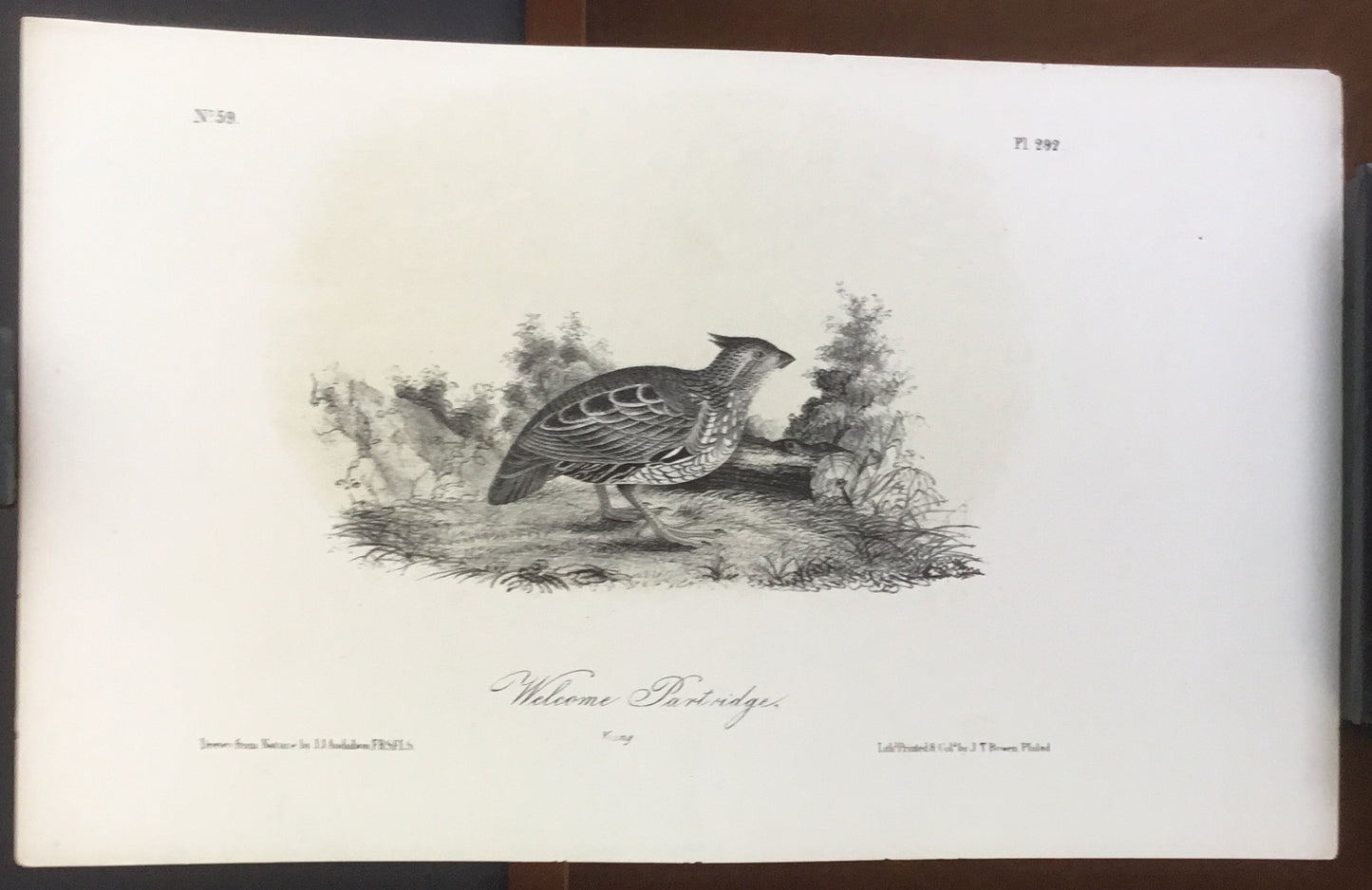 Audubon Octavo Welcome Partridge (2), plate 292, uncolored test sheet, 7 x 11