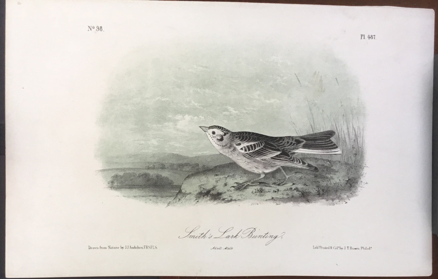 Audubon Octavo Smith’s Lark Bunting, plate 487, uncolored test sheet, 7 x 11