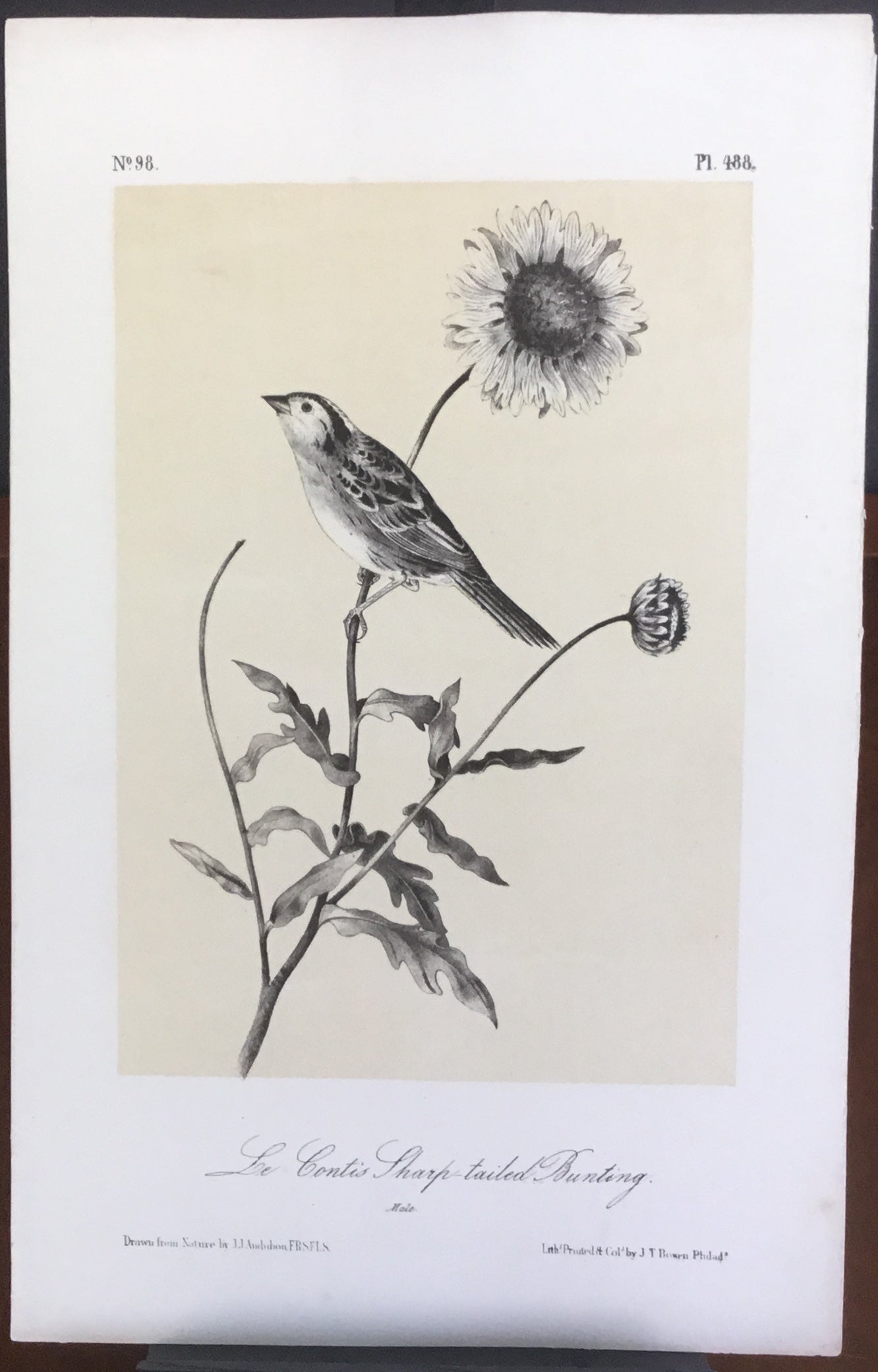 Audubon Octavo Le Contis Sharp-tailed Bunting, plate 488, uncolored test sheet, 7 x 11