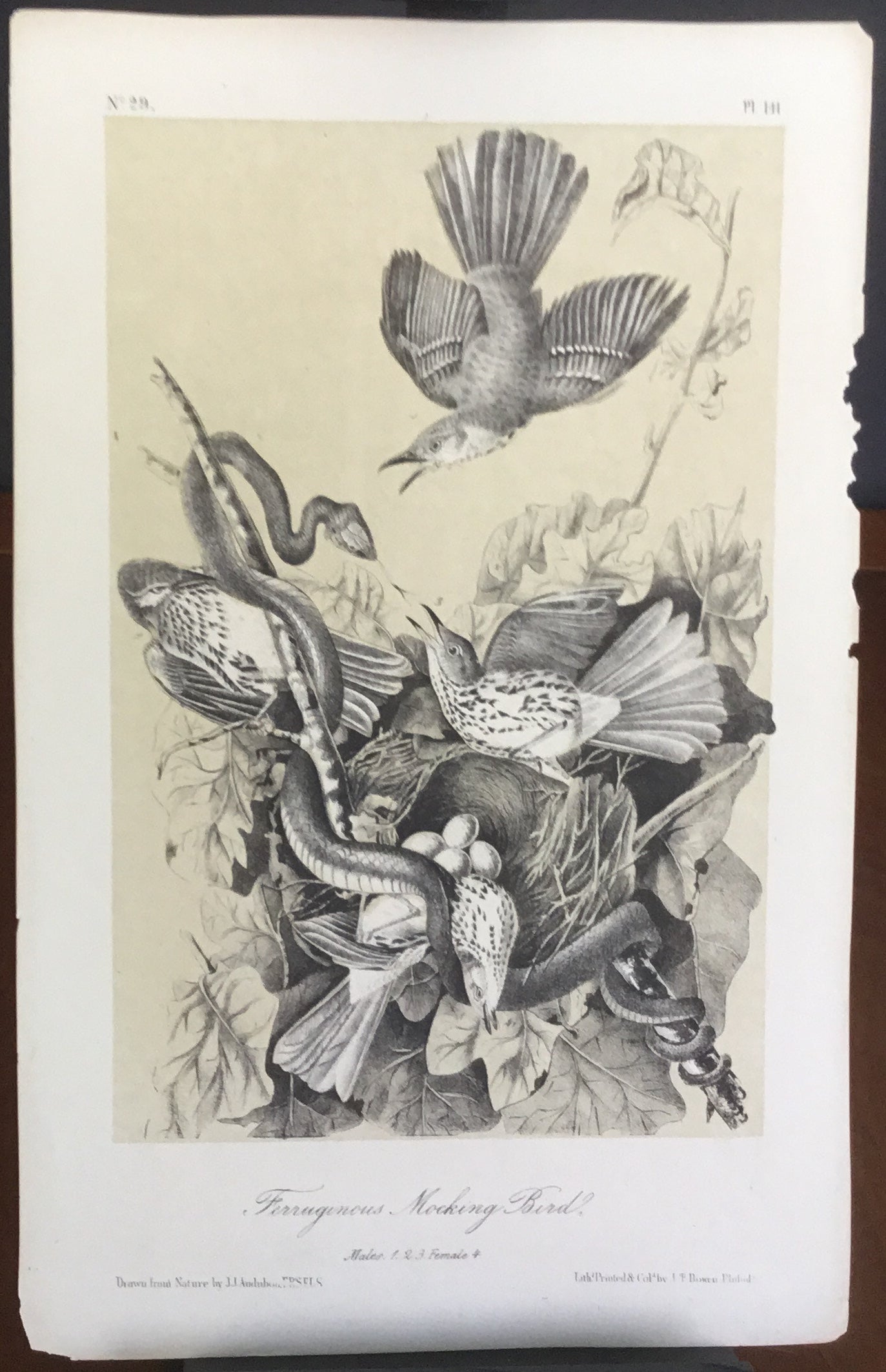 This original Audubon Octavo is an uncolored test sheet, thus the 11 inch measurement before trimming. Condition as shown. It was used as a reference point during the printmaking process. As part of the Lord-Hopkins Collection it was uncovered in 1923 near the last residence and shop of John Bowen, the lithographer. Consisting of pattern prints and test sheets, this collection encompasses all three projects the Audubon family entrusted to Bowen - The Octavo Birds, the Octavo Quadrupeds, and the Imperial Quadrupeds. Very reasonably priced. A true piece of American history. We of course suggest conservation framing.