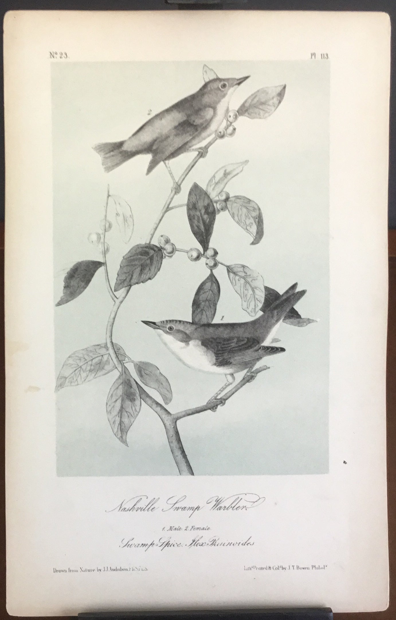 Audubon Octavo Nashville Swamp Warbler, plate 113, uncolored test sheet, 7 x 11
