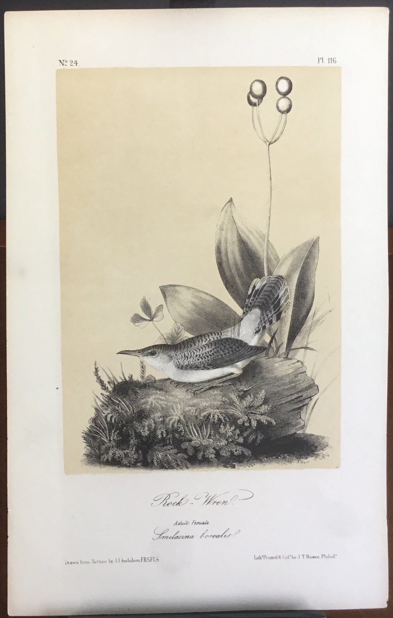Audubon Octavo Rock Wren, plate 116 (2), uncolored test sheet, 7 x 11
