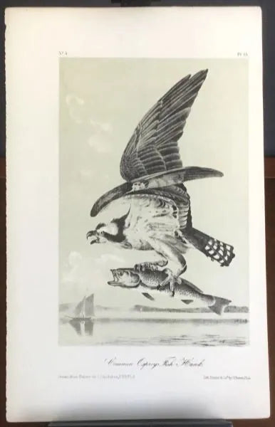 Audubon Octavo Osprey or Fish Hawk, plate 15, uncolored test sheet. 7 x 11