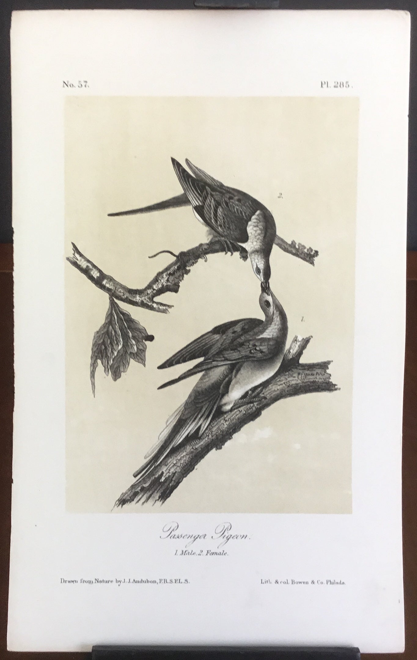 Audubon Octavo Passenger Pigeon, plate 285, uncolored test sheet, 7 x 11