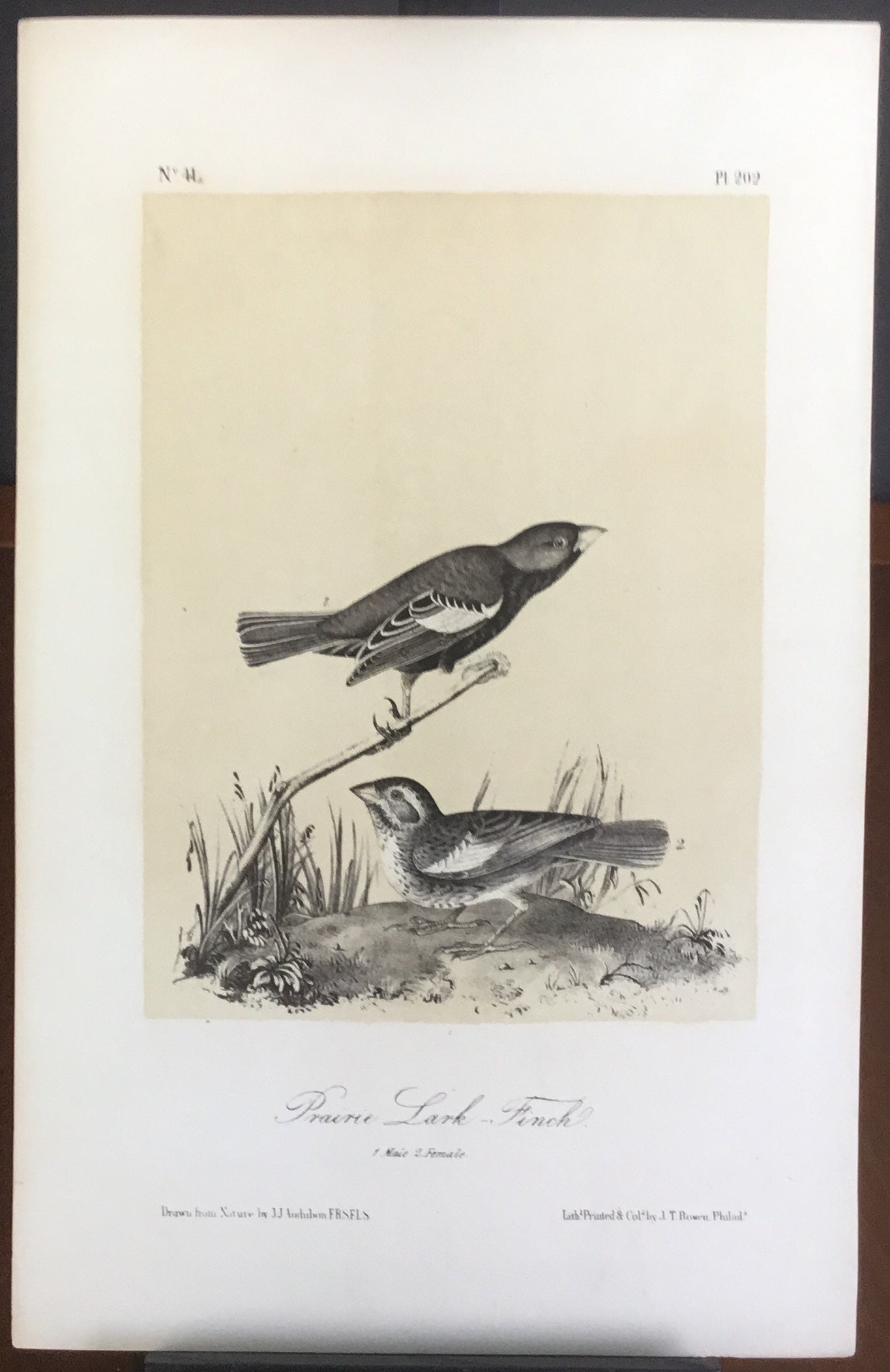Audubon Octavo Prairie Lark Finch, plate 202, uncolored test sheet, 7 x 11