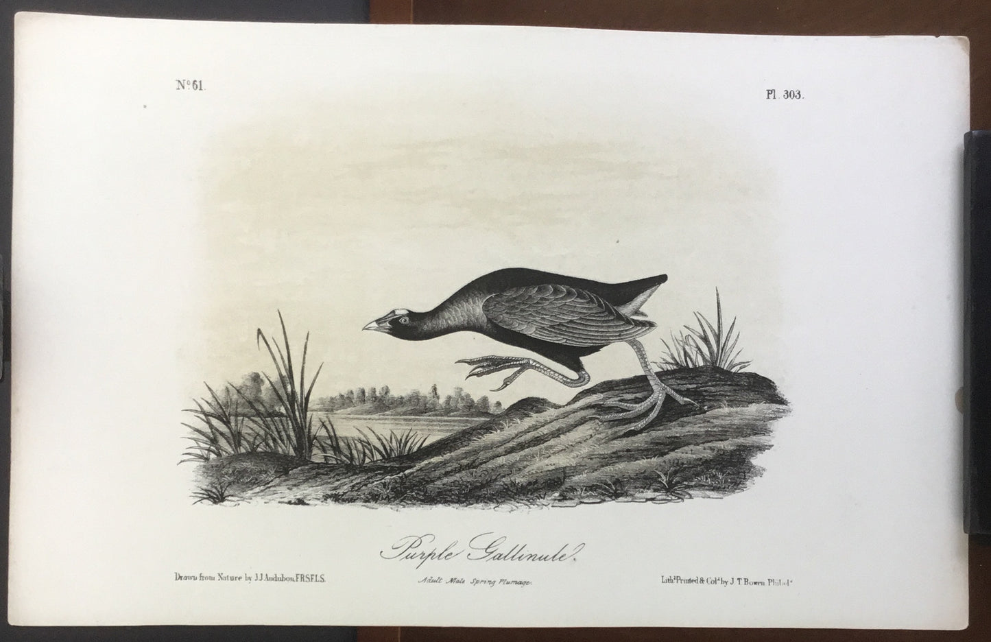Audubon Octavo Purple Gallinule, plate 303, uncolored test sheet, 7 x 11
