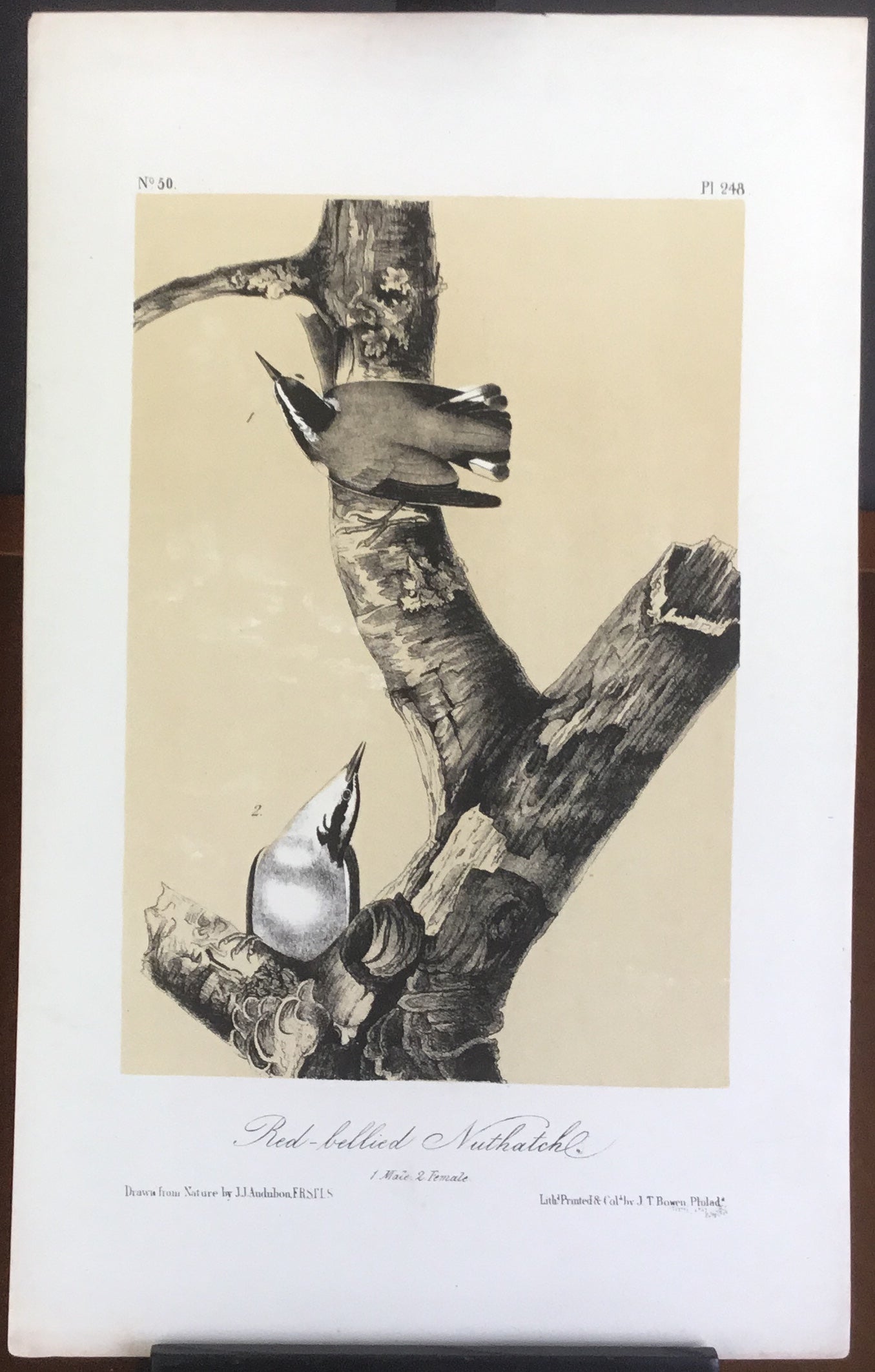 Audubon Octavo Red-bellied Nuthatch , plate 248, uncolored test sheet, 7 x 11