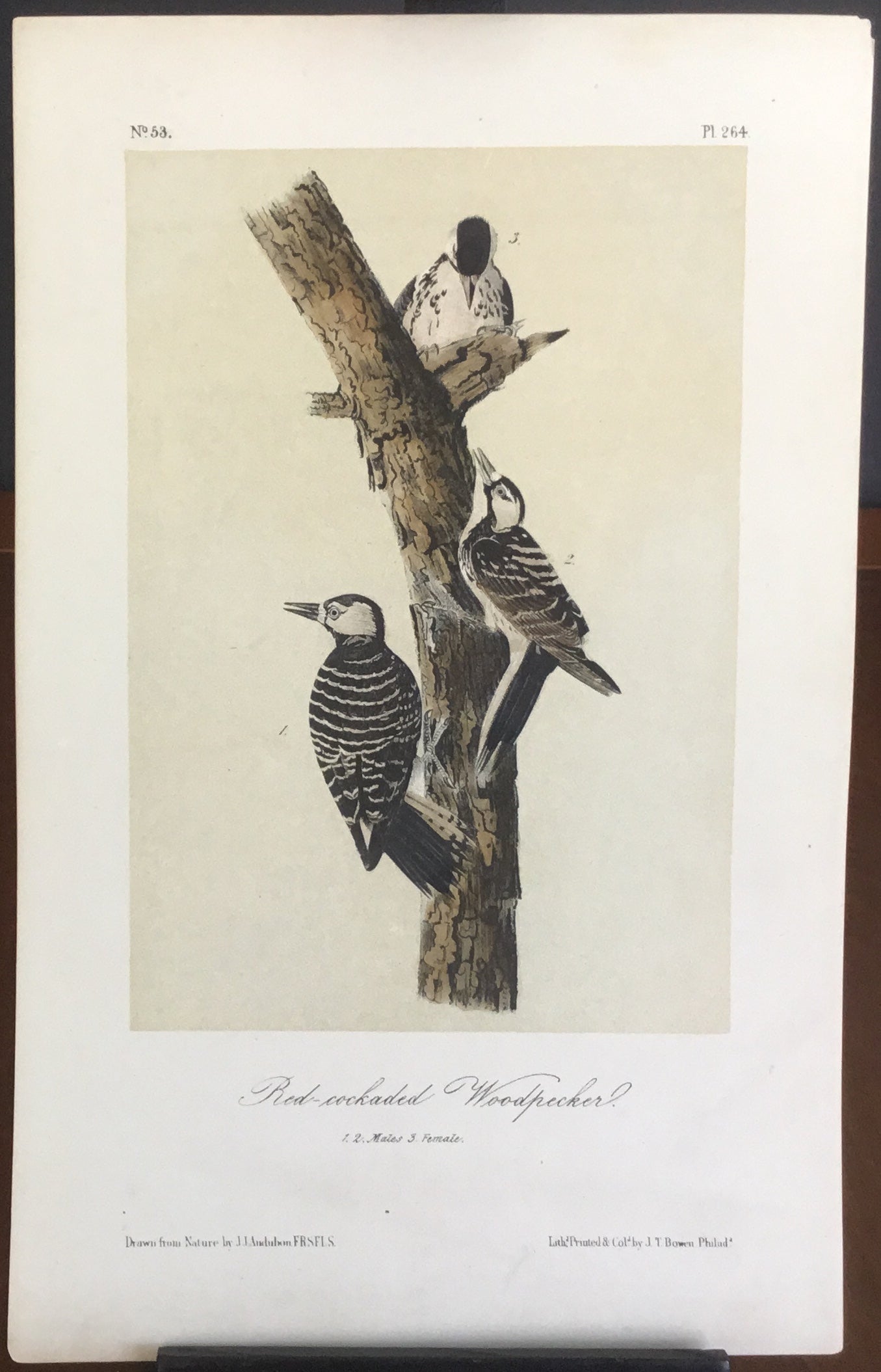 Audubon Octavo Red-cockaded Woodpecker , plate 264, uncolored test sheet, 7 x 11