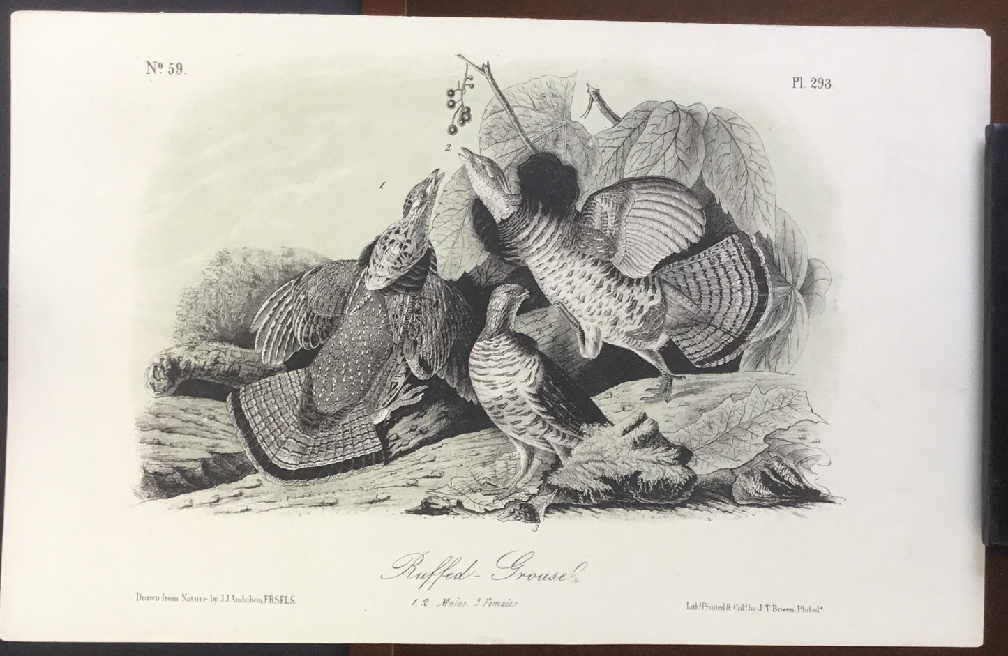 Audubon Octavo Riffed Grouse, plate 293, uncolored test sheet, 7 x 11