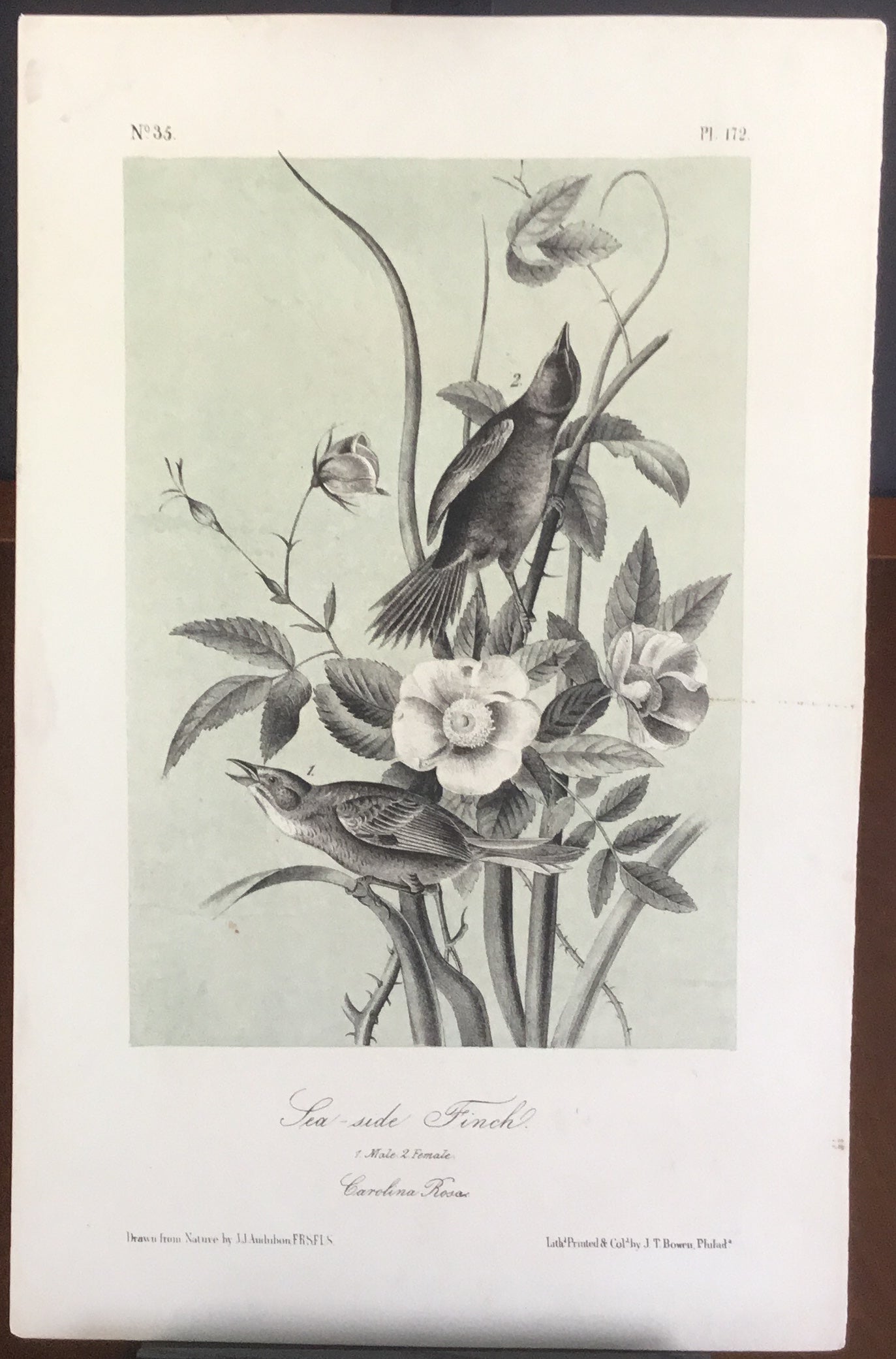 Audubon Octavo Sea-side Finch, plate 172, uncolored test sheet, 7 x 11