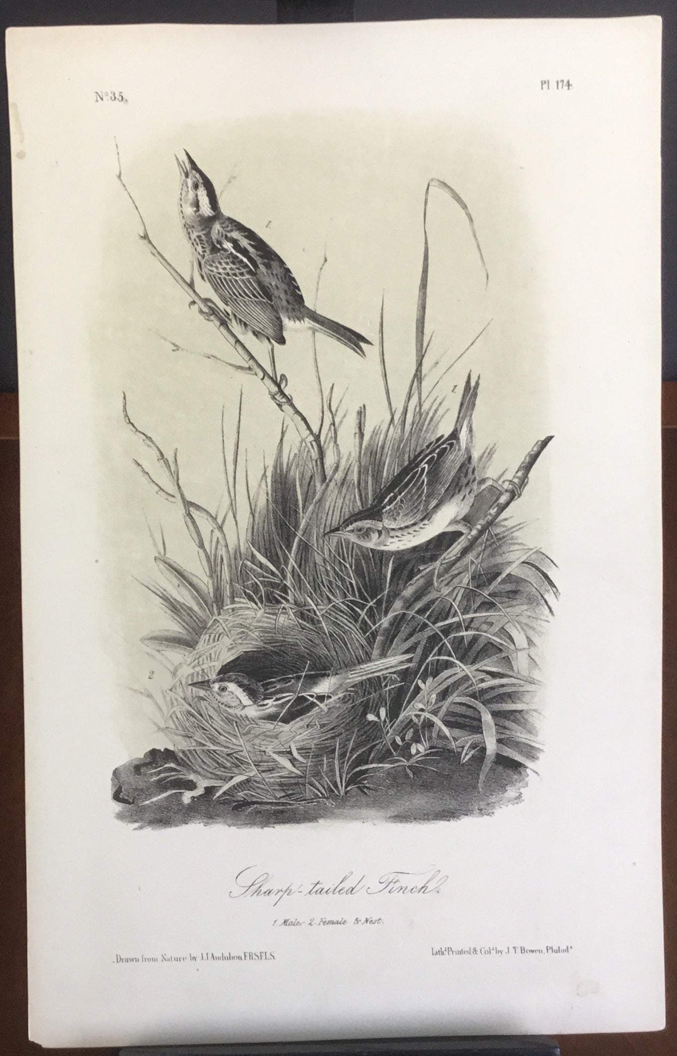 Audubon Octavo Sharp-tailed Finch, plate 174, uncolored test sheet, 7 x 11