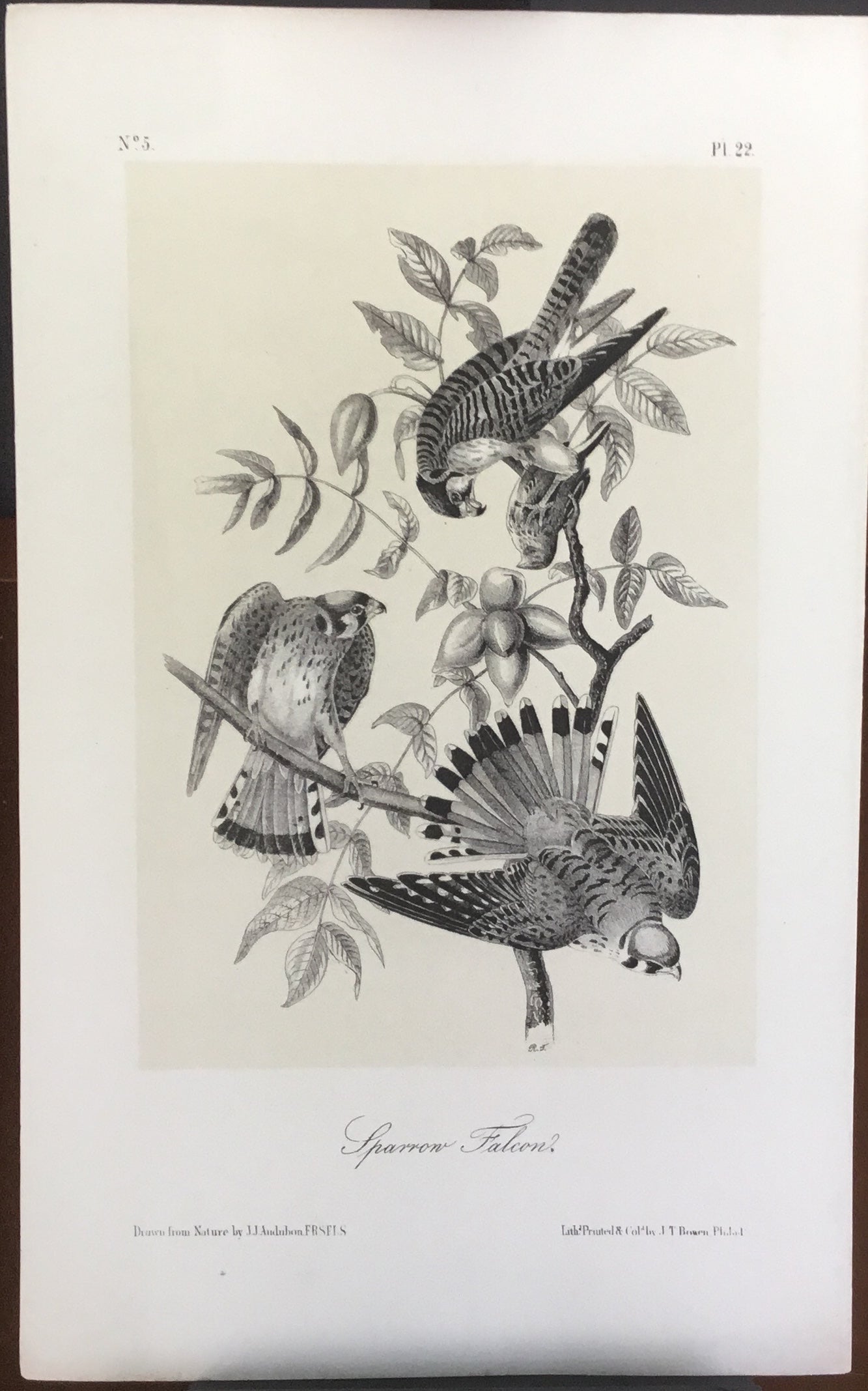 Audubon Octavo Sparrow Falcon plate 22 x uncolored test sheet. 7 x 11