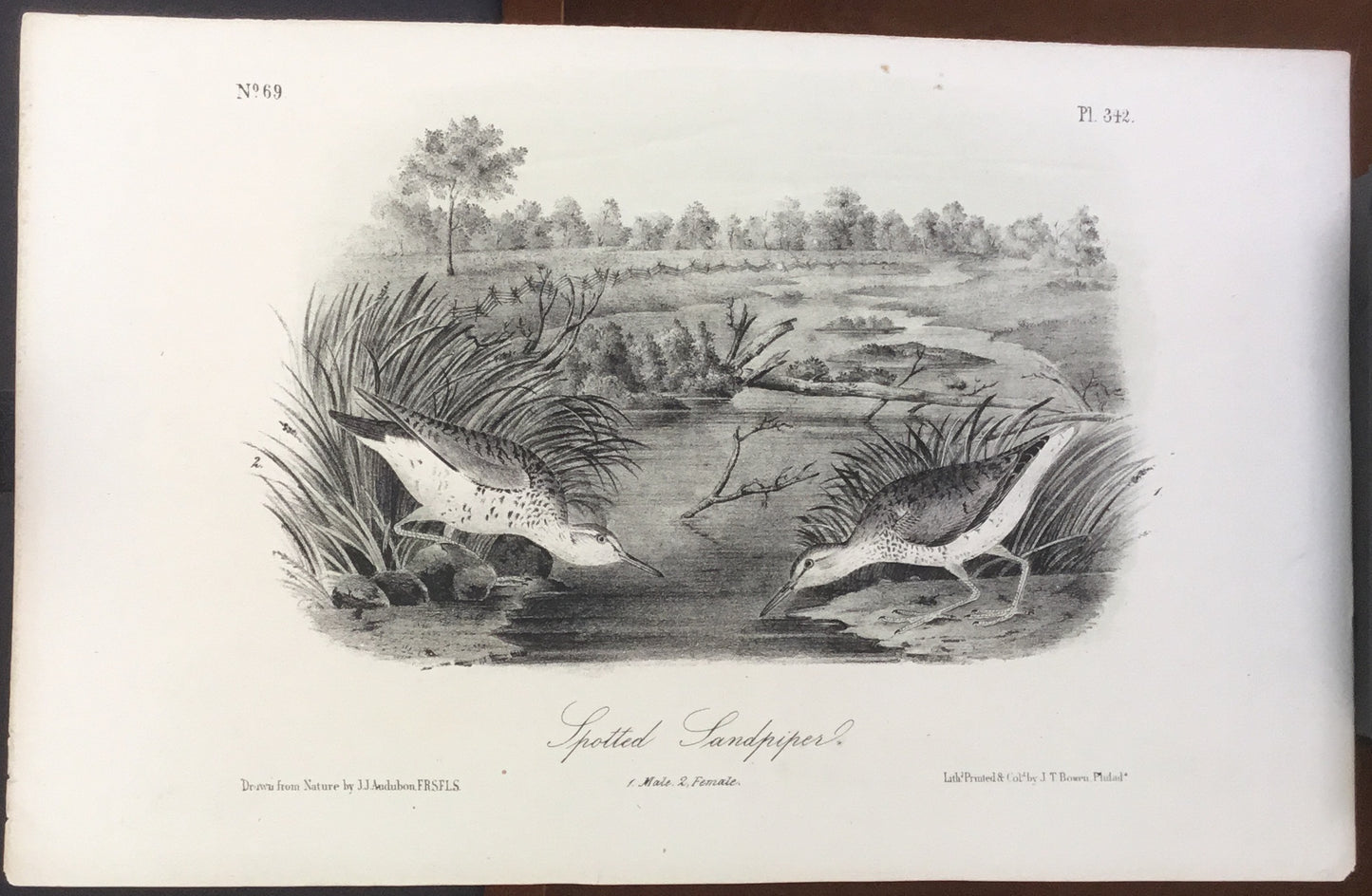 Audubon Octavo Spotted Sandpiper (2), plate 342, uncolored test sheet, 7 x 11