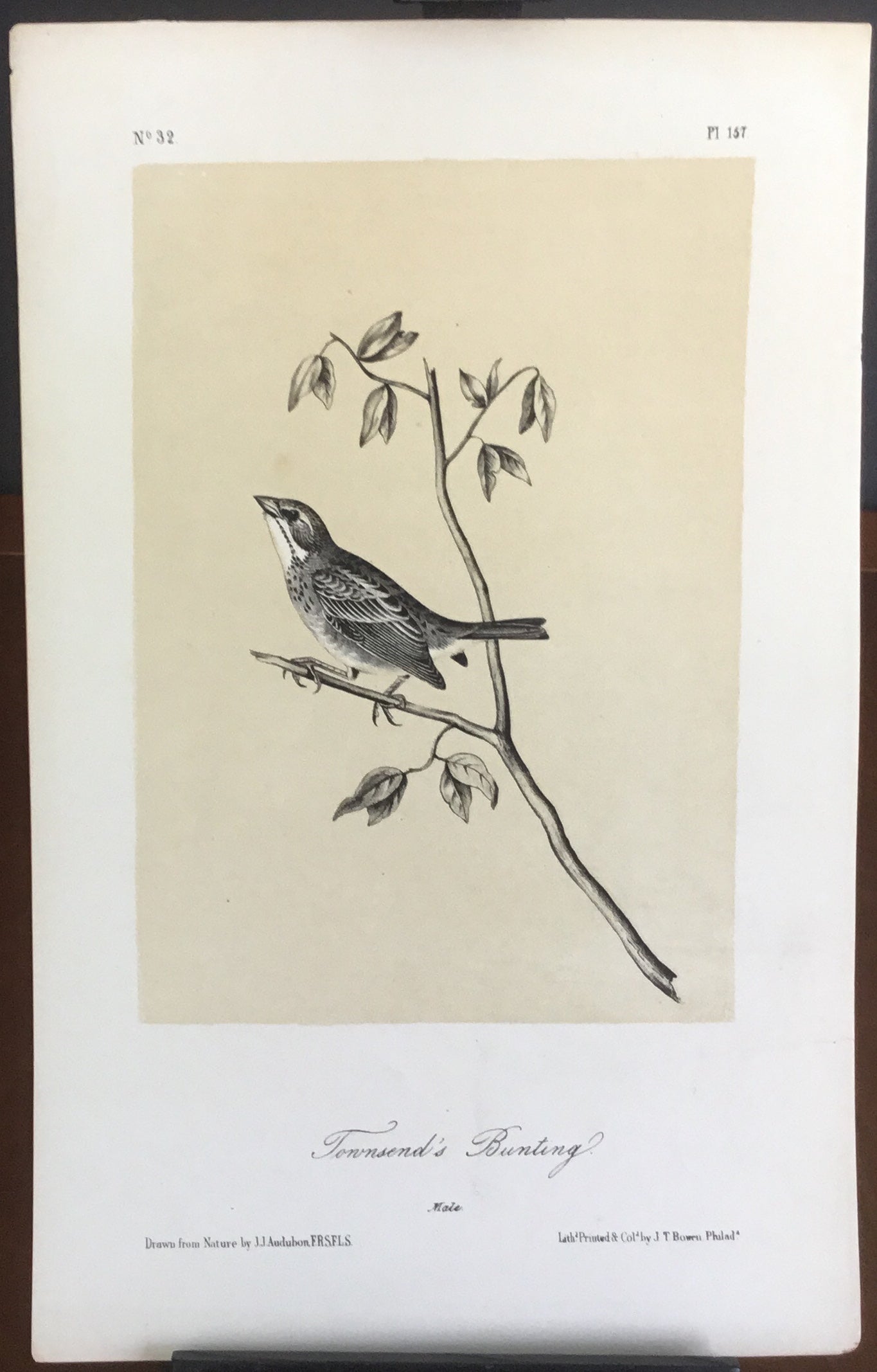 Audubon Octavo Townsend’s Bunting (2), plate 154, uncolored test sheet, 7 x 11