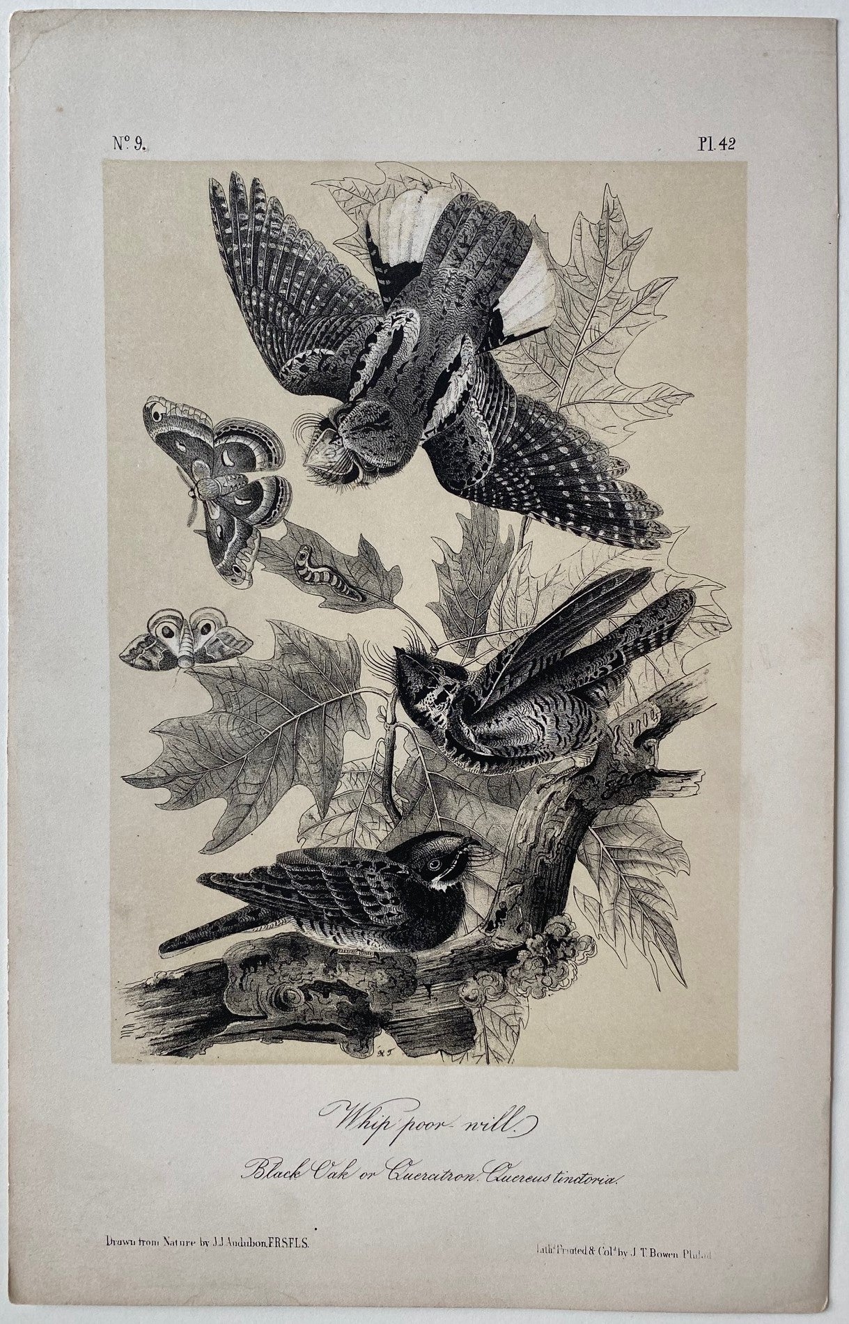 Audubon Octavo Whip-poor Will, plate 42, uncolored test sheet. 7 x 11