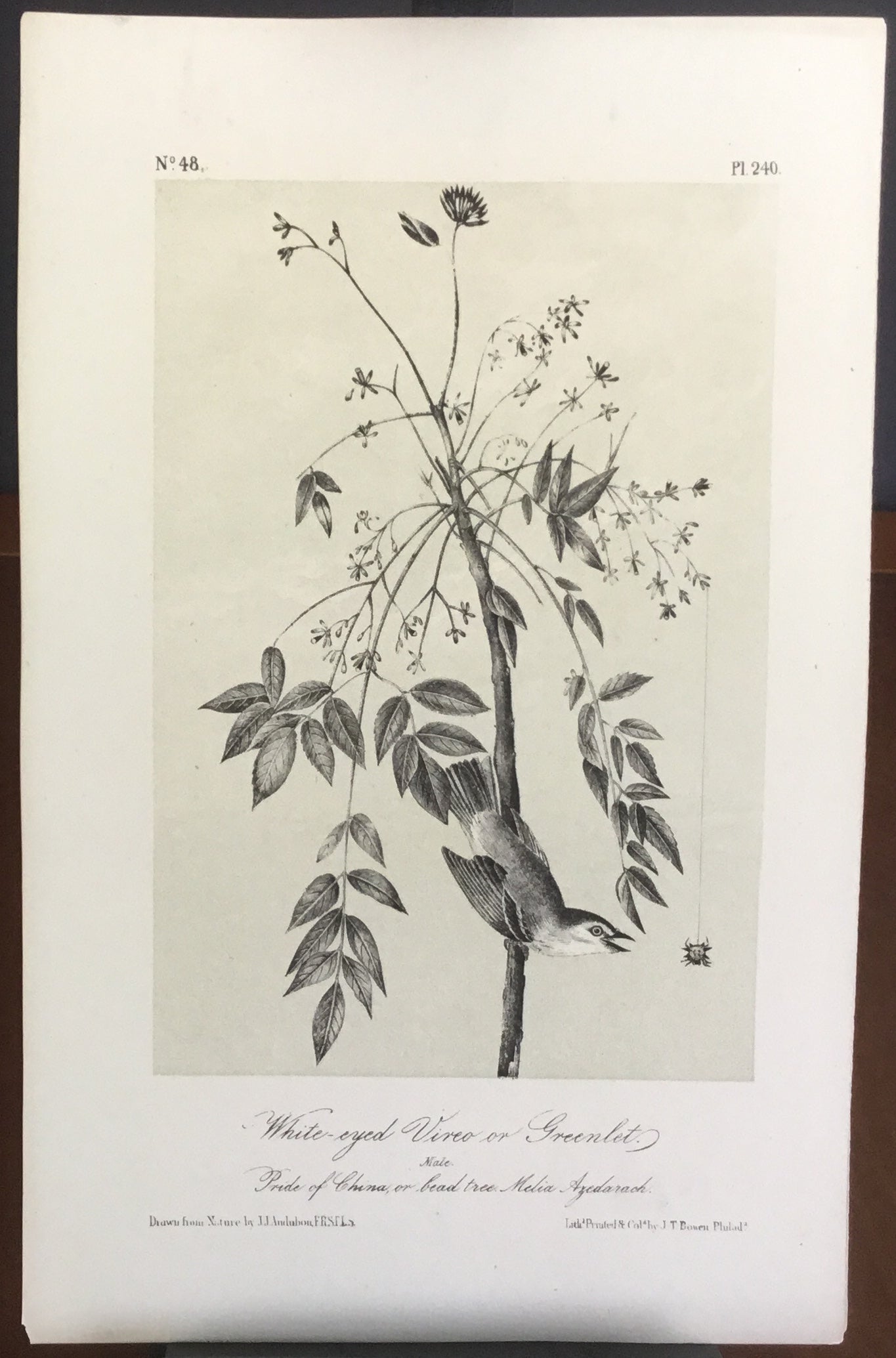 Audubon Octavo White-eyed Vireo or Greenlet, plate 240, uncolored test sheet, 7 x 11