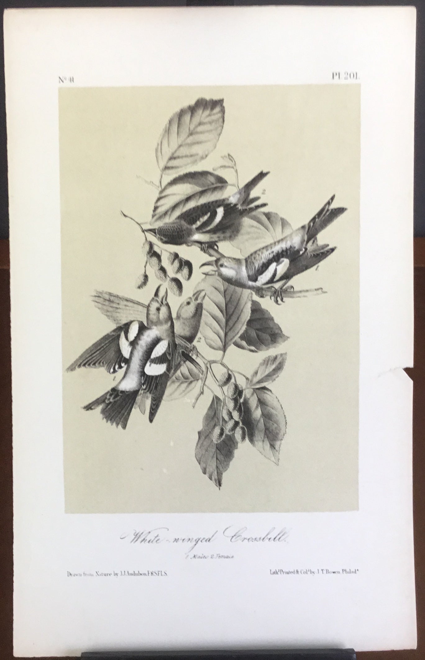 Audubon Octavo White-winged Crossbill (2), plate 201, uncolored test sheet, 7 x 11