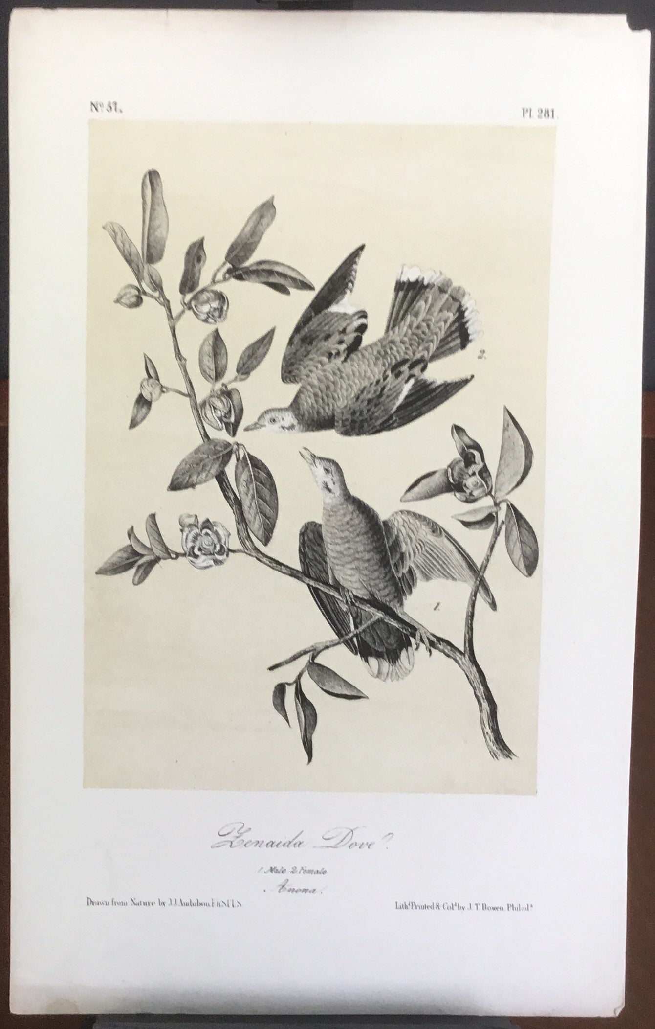 Audubon Octavo Zenaida Dove, plate 281, uncolored test sheet, 7 x 11