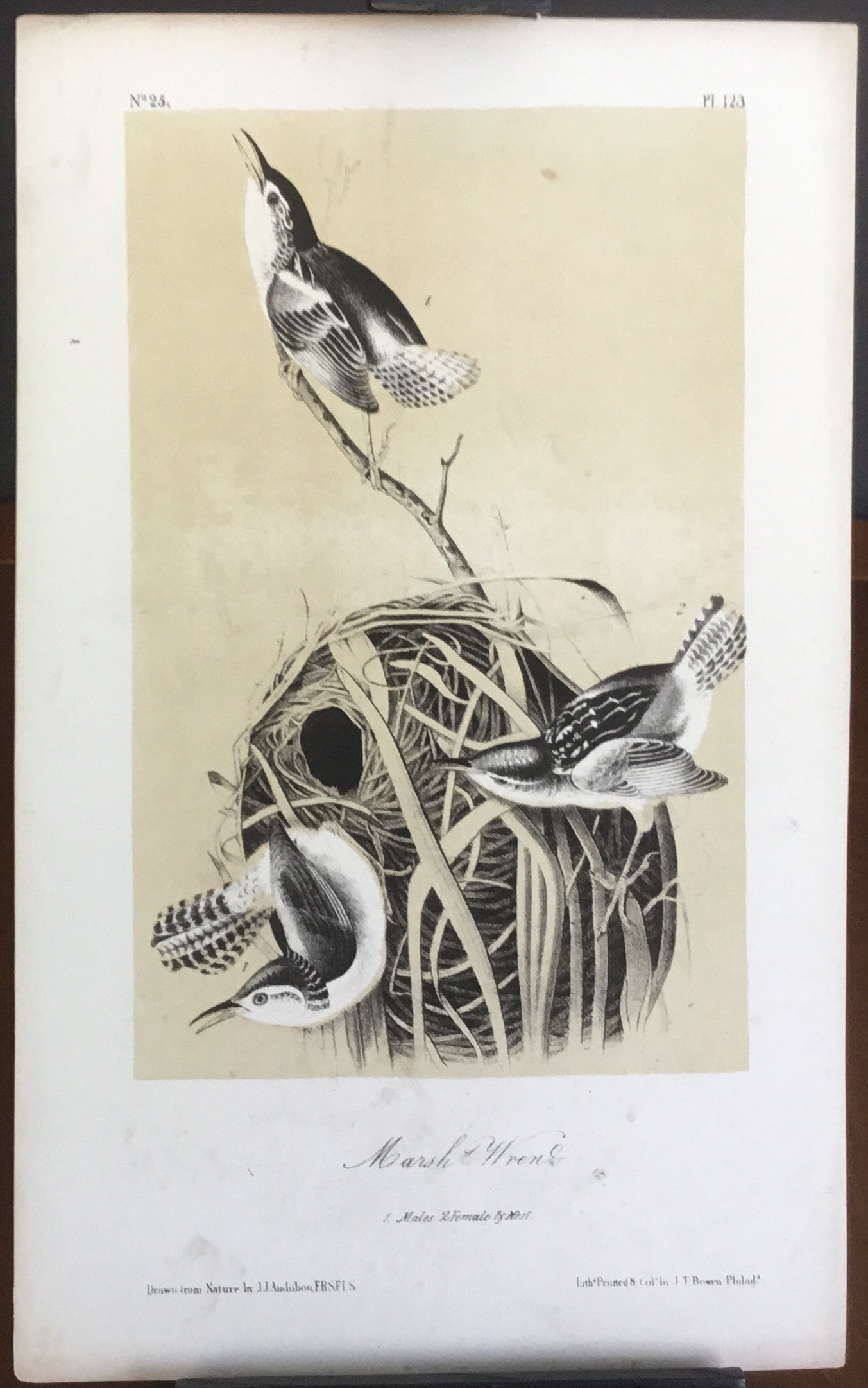 Audubon Octavo Marsh Wren, plate 123, uncolored test sheet, 7 x 11