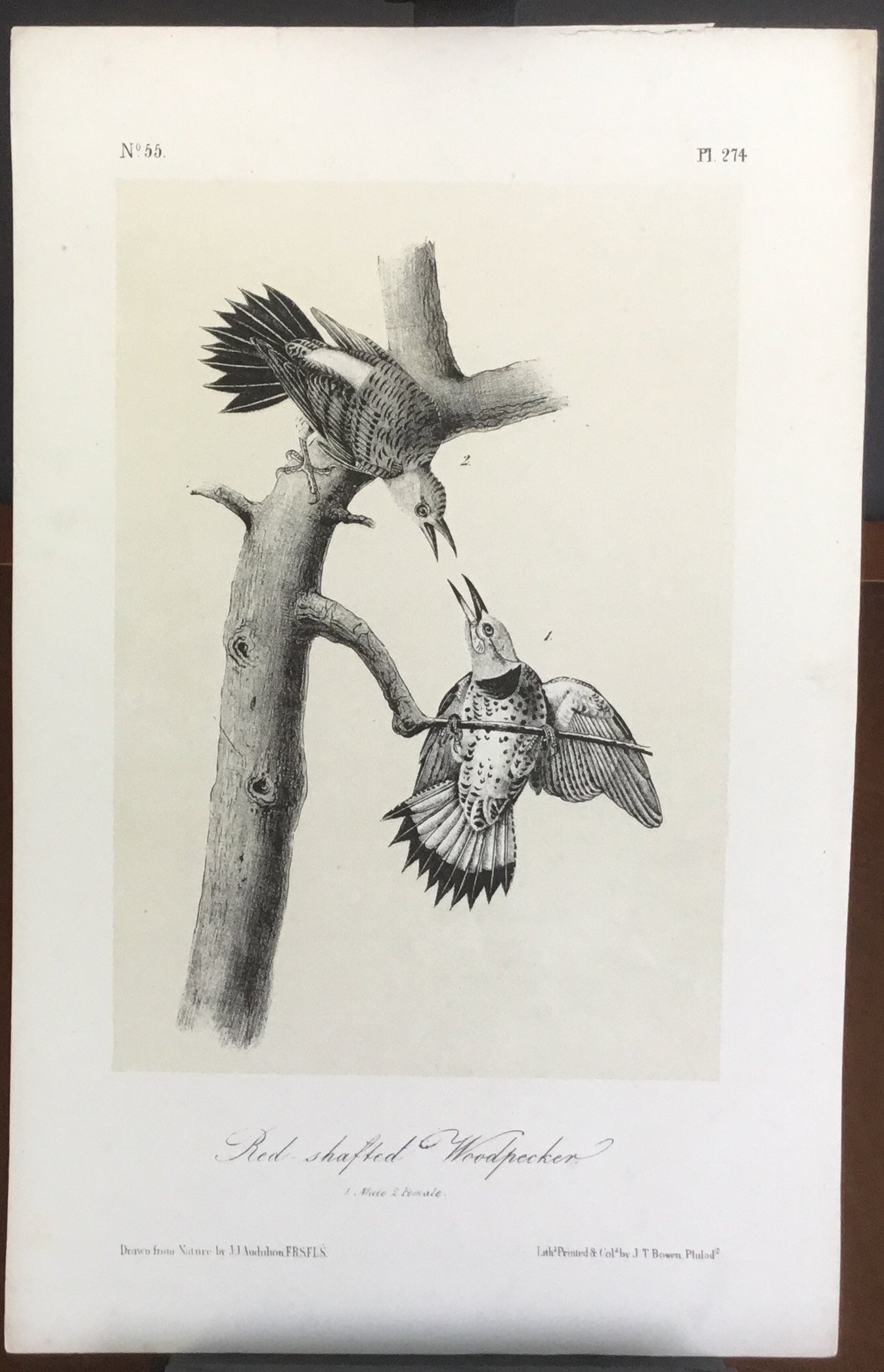 Audubon Octavo Red-shafted Woodpecker, plate 274, uncolored test sheet, 7 x 11