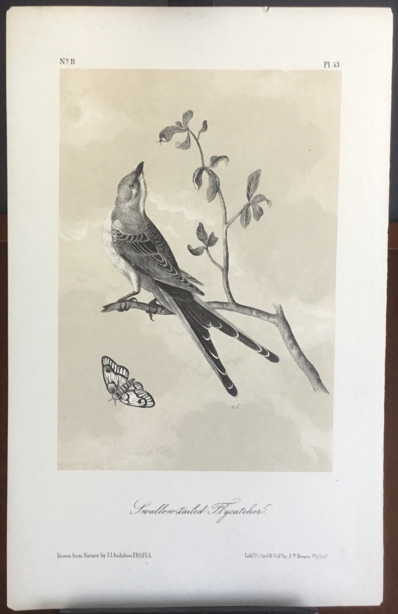 Audubon Octavo Swallow-tailed Flycatcher, plate 53, uncolored test sheet. 7 x 11