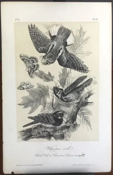 Audubon Octavo Whip-poor Will, plate 42, uncolored test sheet. 7 x 11