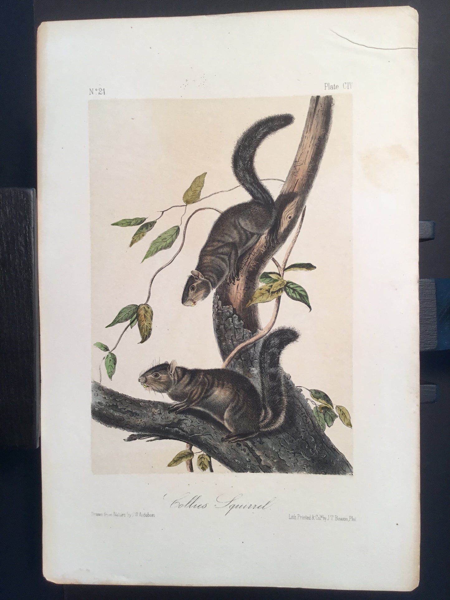 Found by accident in 1923 with marked pattern prints from J. T. Bowen’s Philadelphia studio. COA included. Condition as shown. This print is from the last group of prints known to have come out of Bowen’s studio. Well-worn, it is possible that it too was used as a pattern print during the time Bowen lithographed Audubon’s quadrupeds. This print speaks to the history of American printmaking. A once in a generation historic find. Reasonably priced.