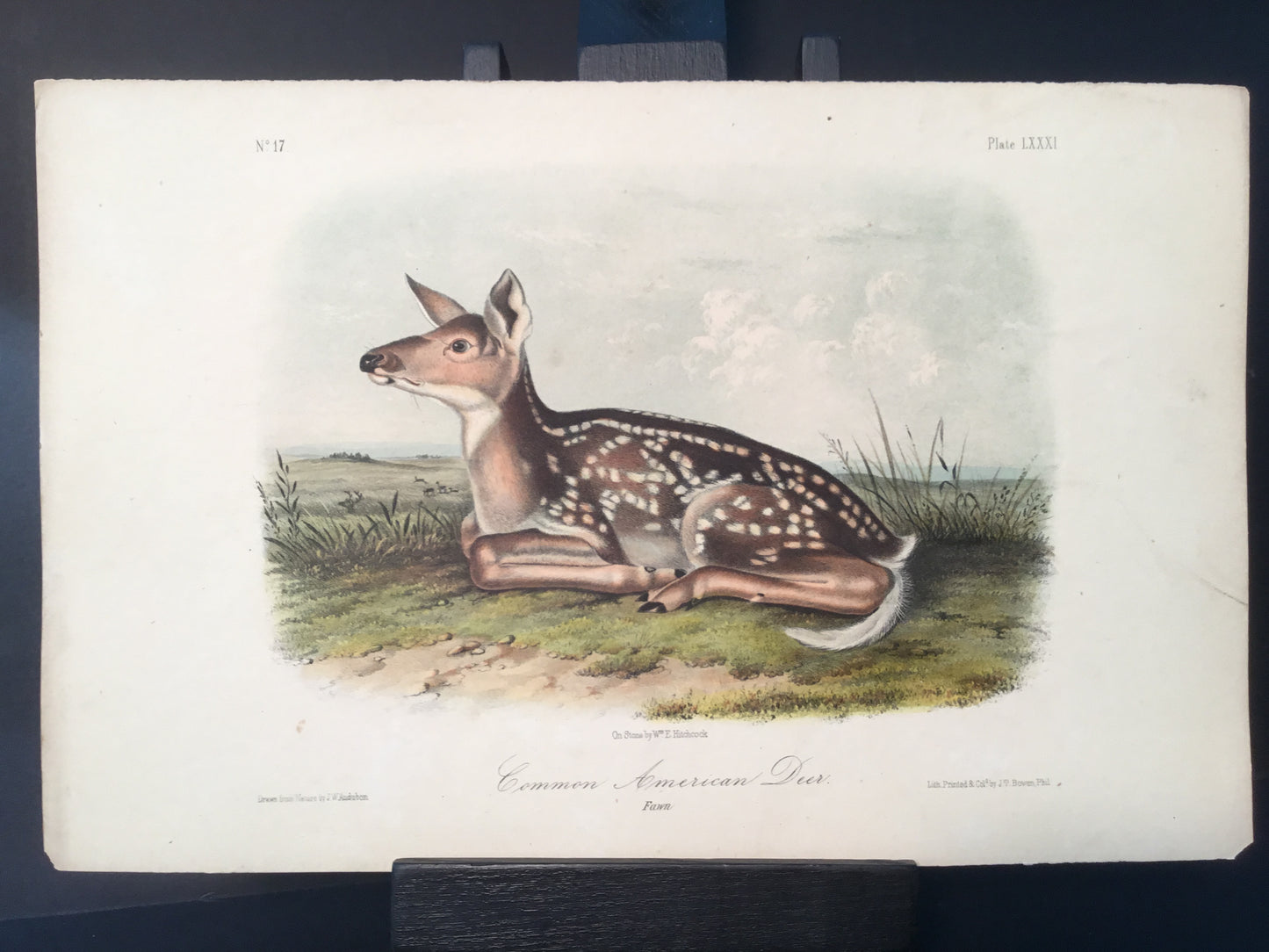 Found by accident in 1923 with marked pattern prints from J. T. Bowen’s Philadelphia studio. COA included. Condition as shown. This print is from the last group of prints known to have come out of Bowen’s studio. Well-worn, it is possible that it too was used as a pattern print during the time Bowen lithographed Audubon’s quadrupeds. This print speaks to the history of American printmaking. A once in a generation historic find. Reasonably priced.