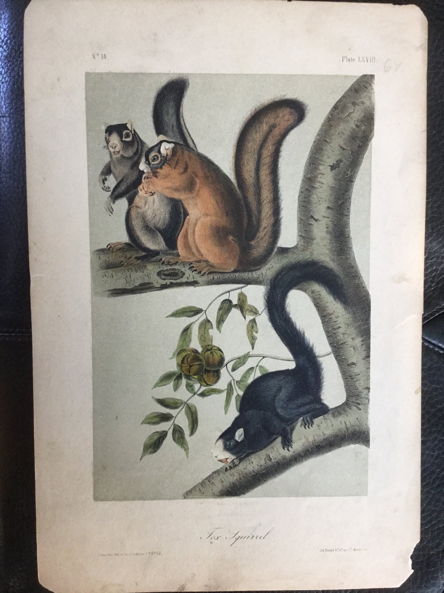 Found by accident in 1923 with marked pattern prints from J. T. Bowen’s Philadelphia studio. COA included. Condition as shown. This print is from the last group of prints known to have come out of Bowen’s studio. Well-worn, it is possible that it too was used as a pattern print during the time Bowen lithographed Audubon’s quadrupeds. This print speaks to the history of American printmaking. A once in a generation historic find. Reasonably priced.