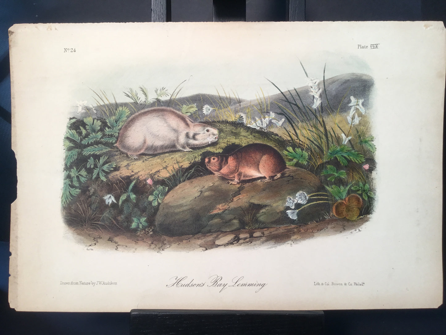 Found by accident in 1923 with marked pattern prints from J. T. Bowen’s Philadelphia studio. COA included. Condition as shown. This print is from the last group of prints known to have come out of Bowen’s studio. Well-worn, it is possible that it too was used as a pattern print during the time Bowen lithographed Audubon’s quadrupeds. This print speaks to the history of American printmaking. A once in a generation historic find. Reasonably priced.