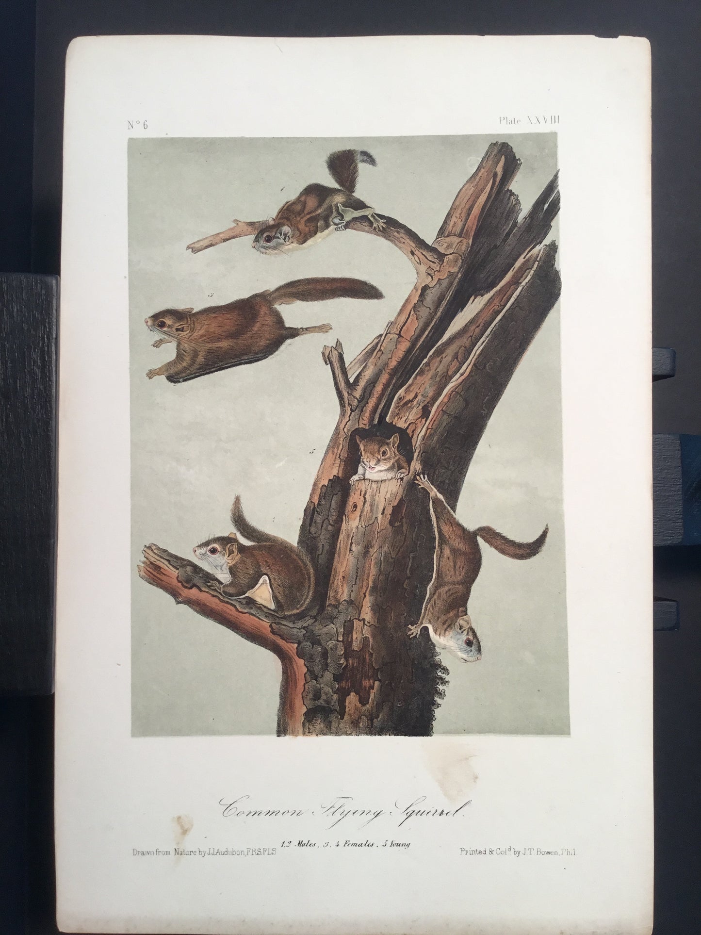 Found by accident in 1923 with marked pattern prints from J. T. Bowen’s Philadelphia studio. COA included. Condition as shown. This print is from the last group of prints known to have come out of Bowen’s studio. Well-worn, it is possible that it too was used as a pattern print during the time Bowen lithographed Audubon’s quadrupeds. This print speaks to the history of American printmaking. A once in a generation historic find. Reasonably priced.