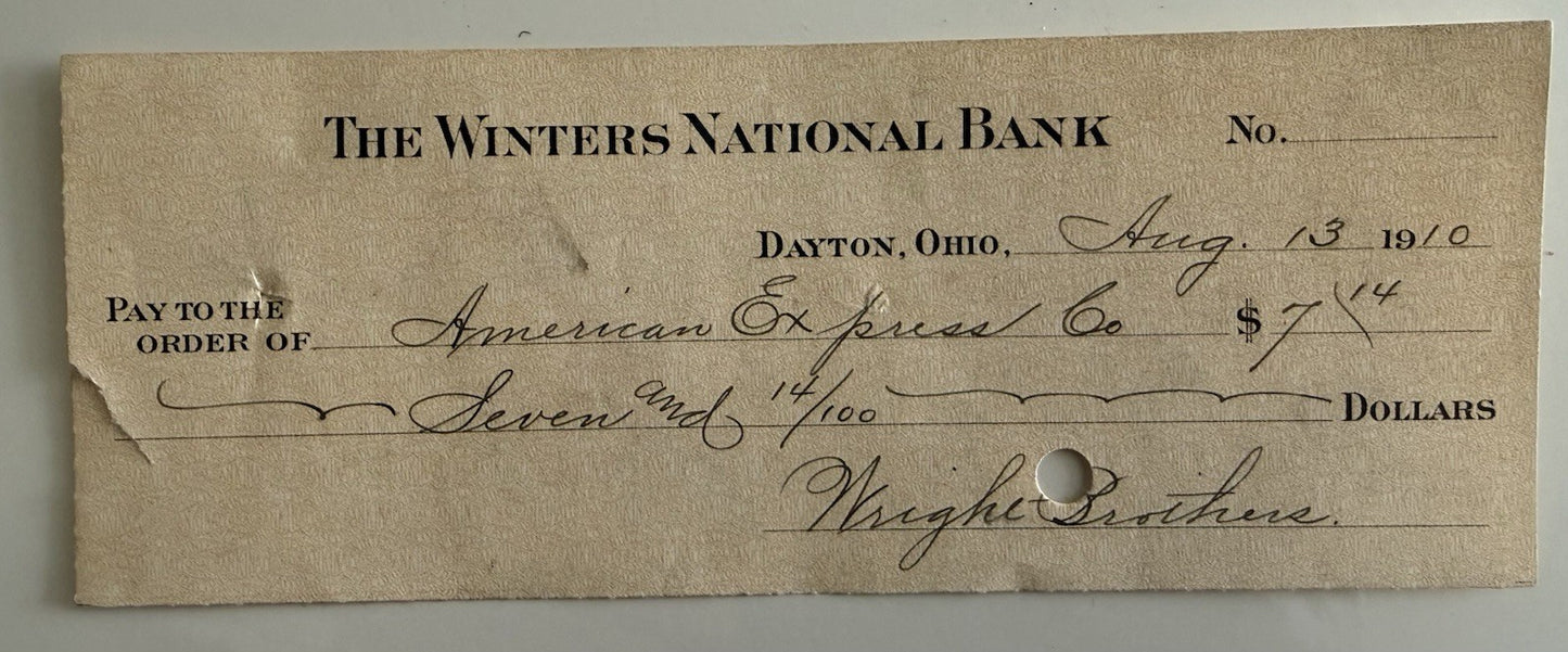 1910 Wright Brothers Check To American Express Signed By Lorin Wright