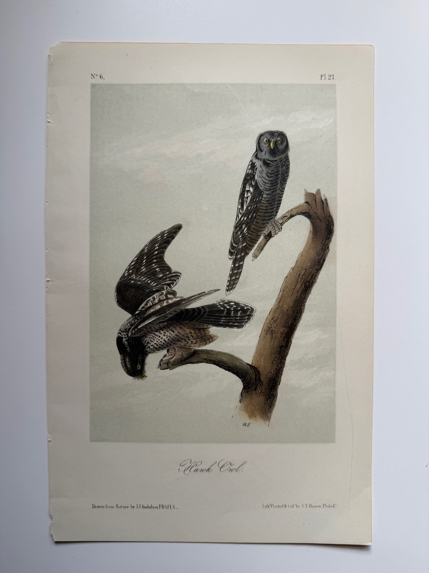 Add Original Audubon 2nd Edition octavo number 6, plate 27, Hawk Owl to the cart
