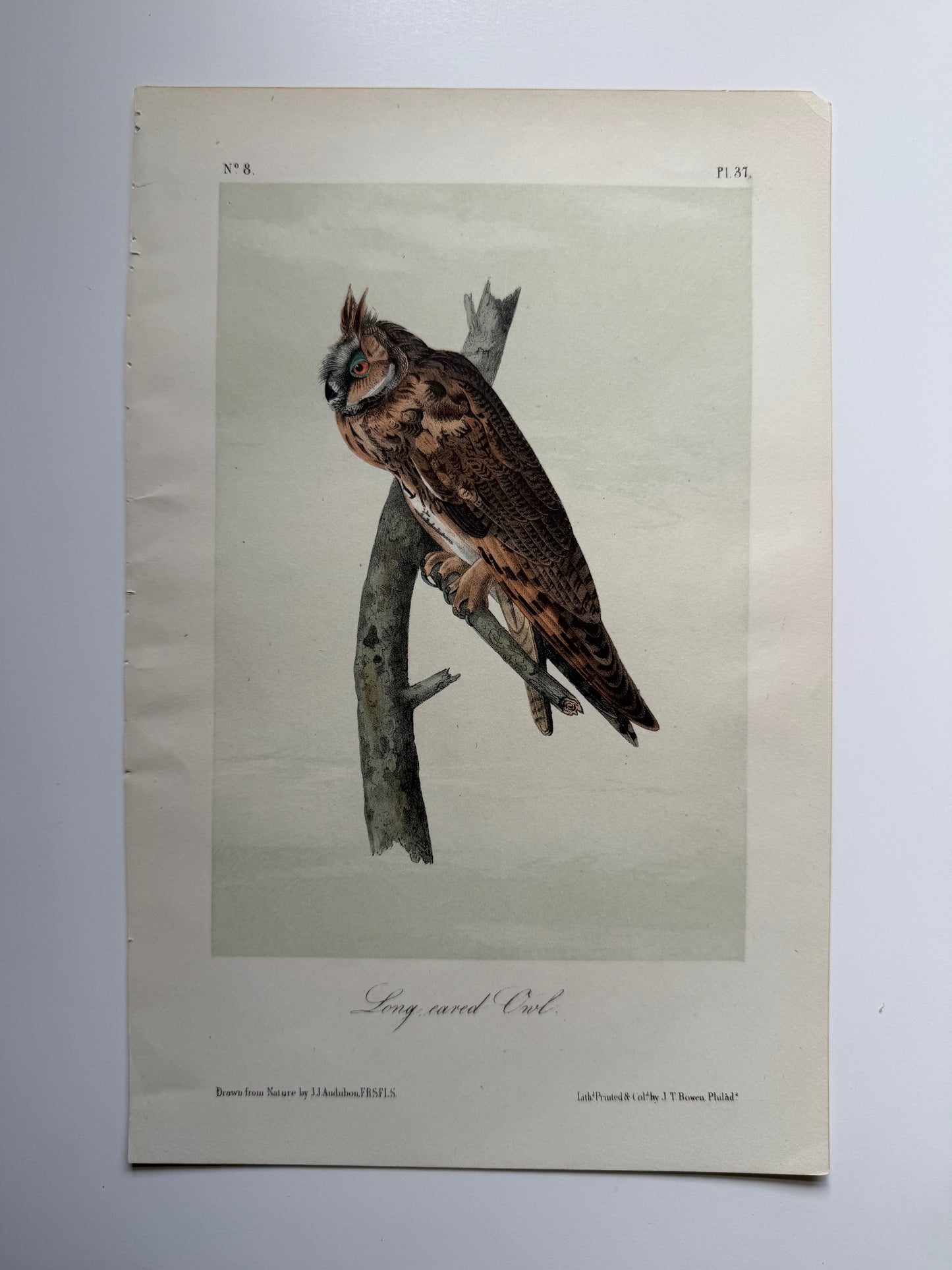 Add Original Audubon 2nd Edition octavo number 8, plate 37, Long-eared Owl to the cart