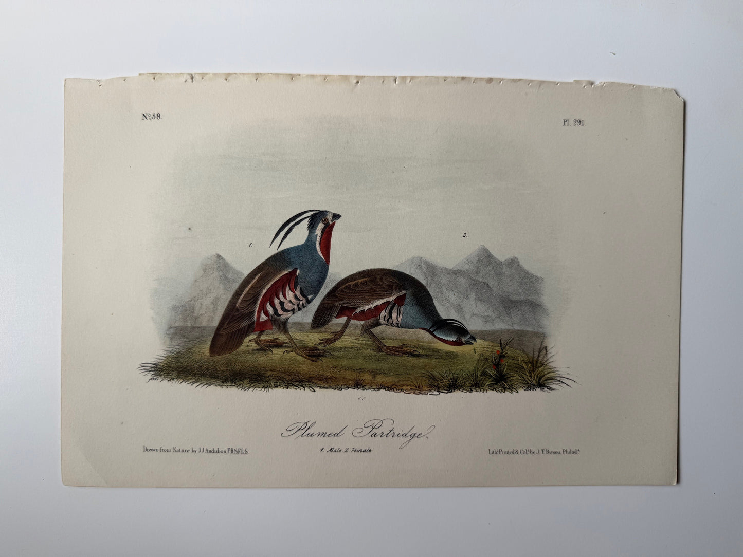 Add Original Audubon 2nd Edition octavo number 59, plate 291, Plumed Partridge to the cart
