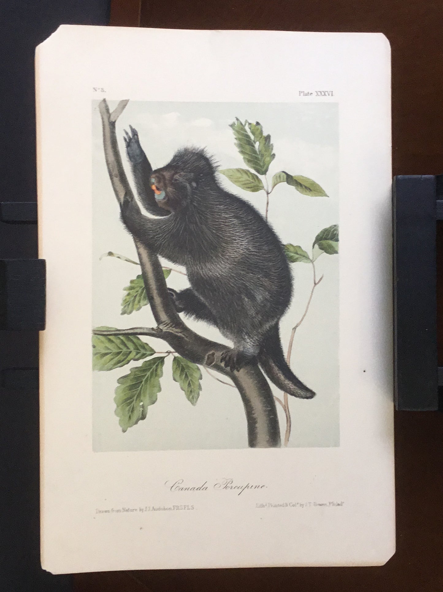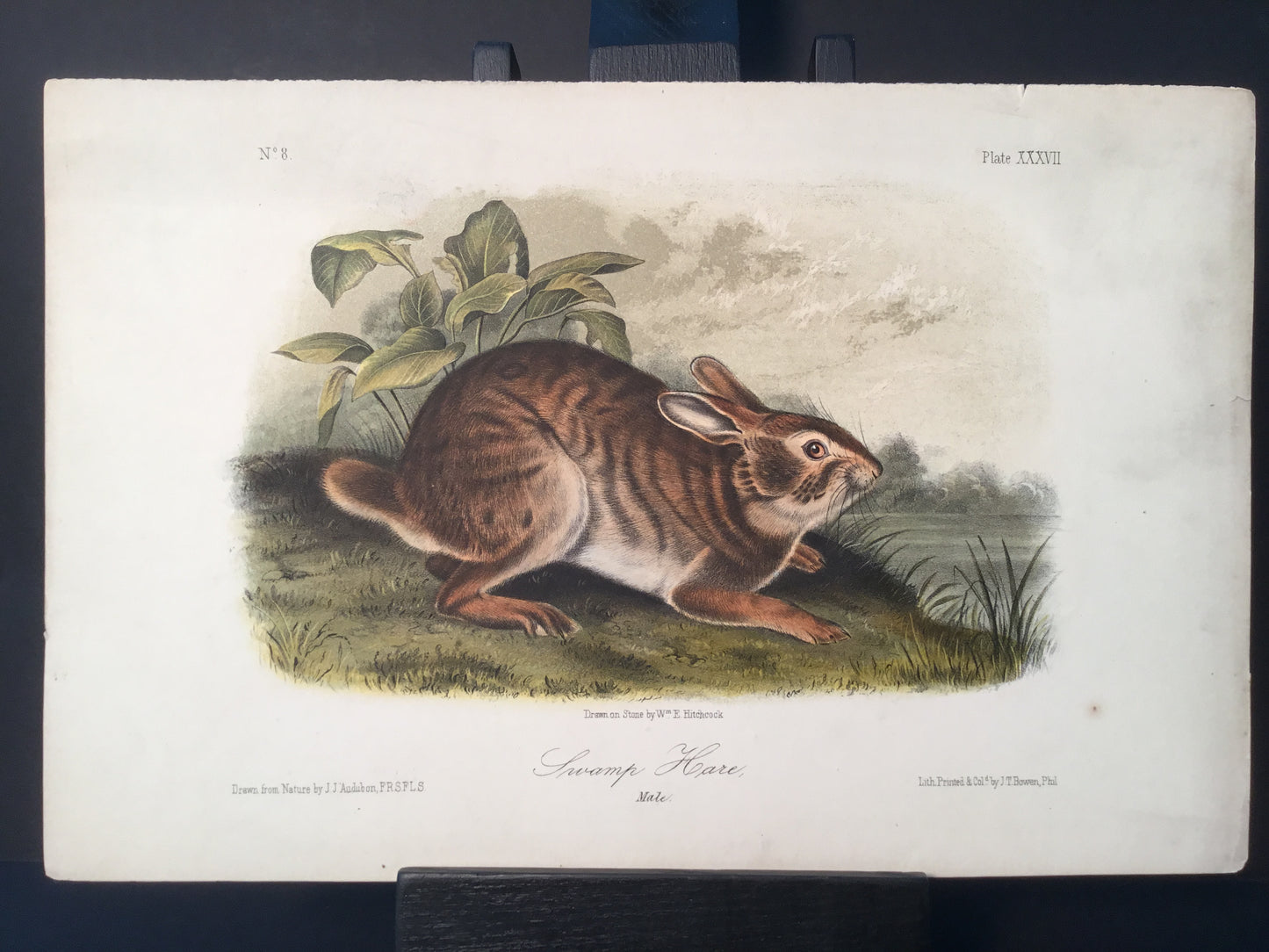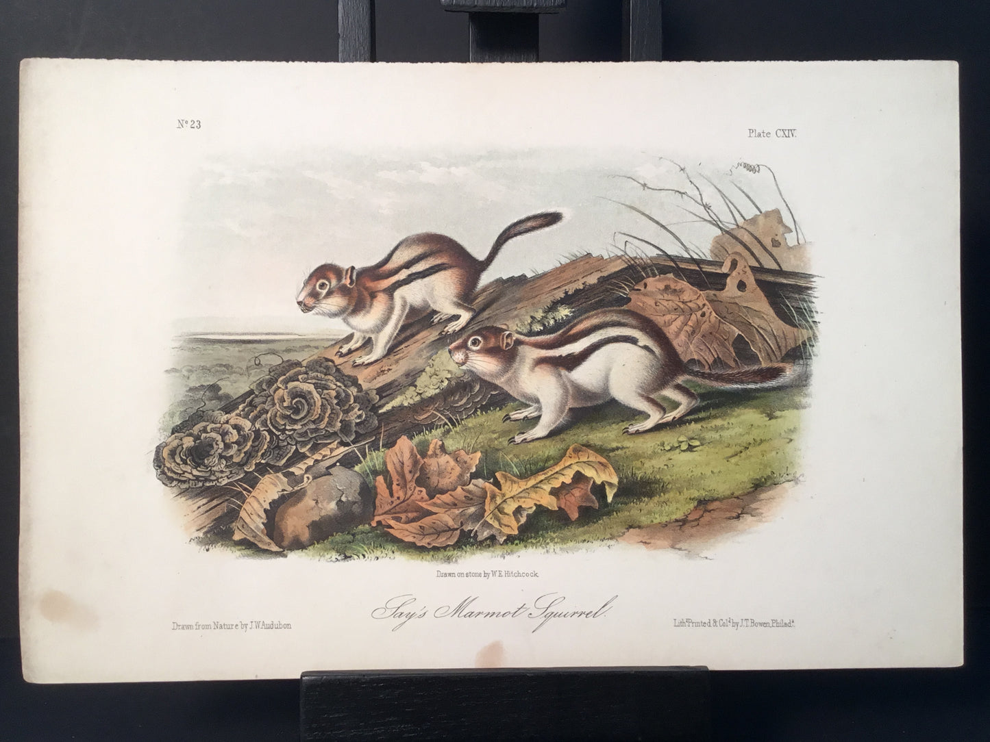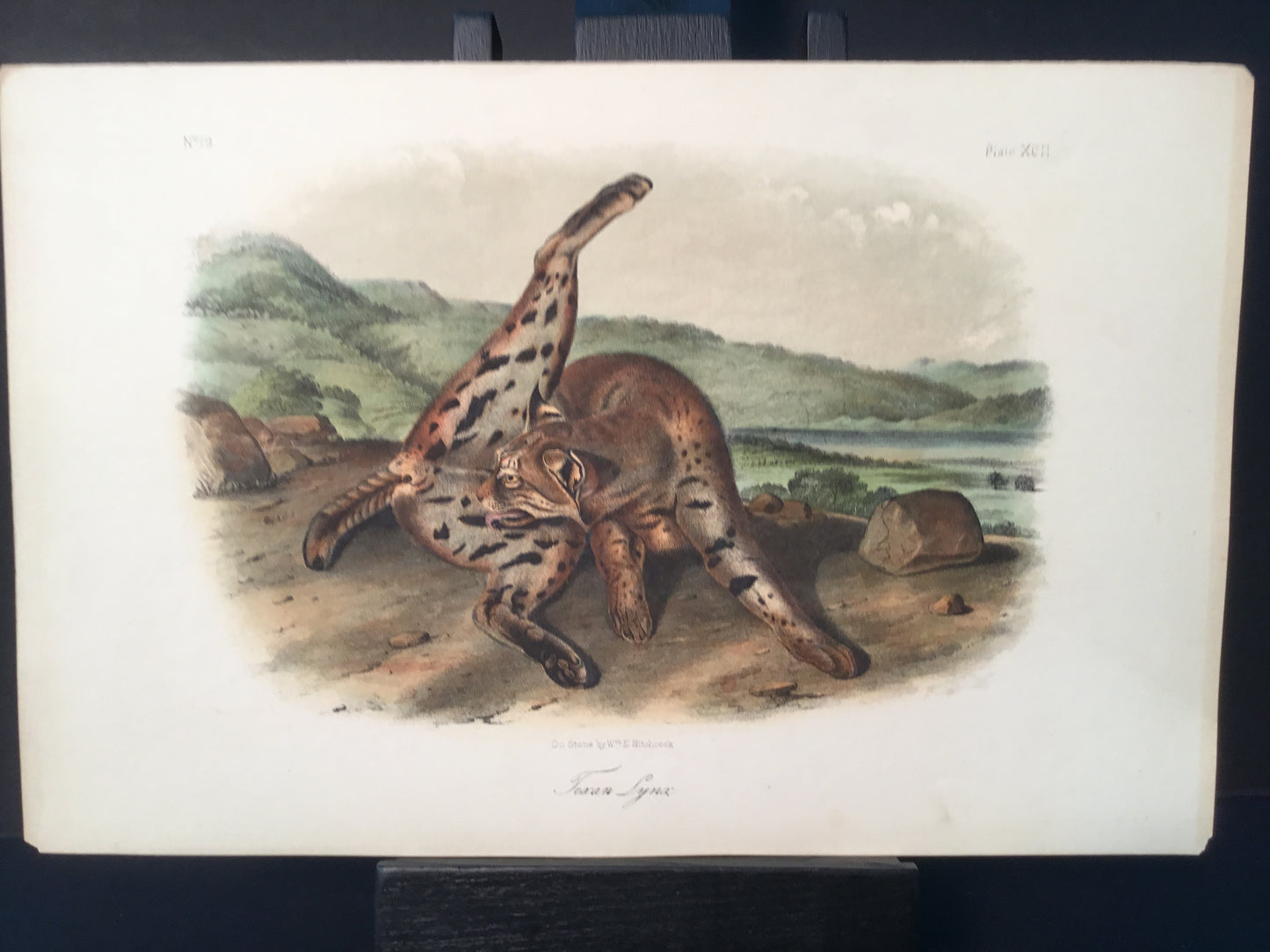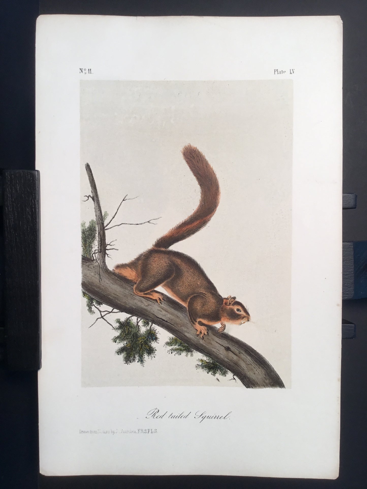 Audubon's sons saw the need to reduce the size of the Imperials, and beginning in 1849, the octavo edition of The Quadrupeds of North America was published in three volumes. Volume 1 was followed in 1851 with the second volume, and the final, the third volume was published in 1854. Between 1,999 and 2,004 sets were published in this first edition. The size for these editions was about 6 1/2 x 10 1/2 inches.